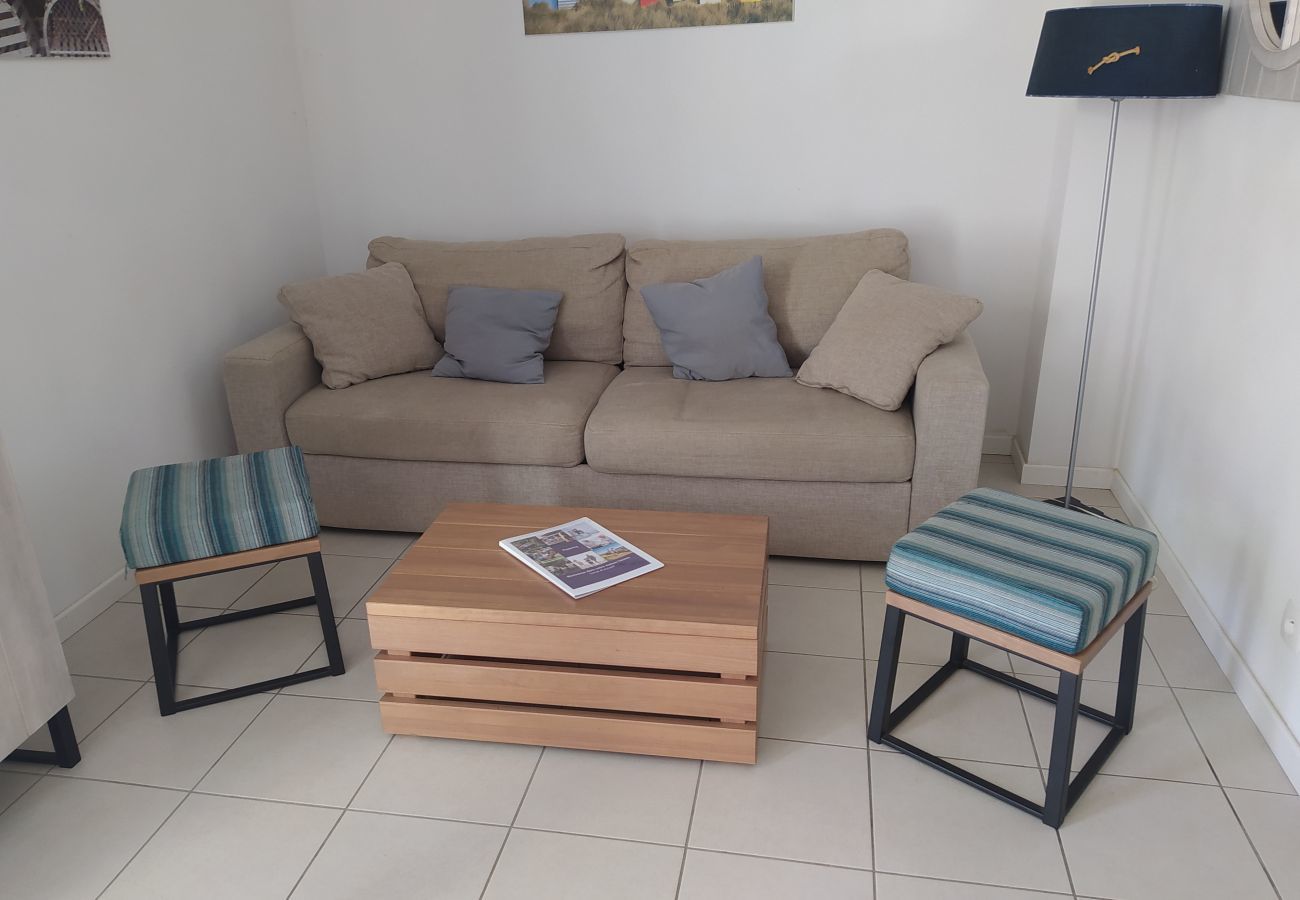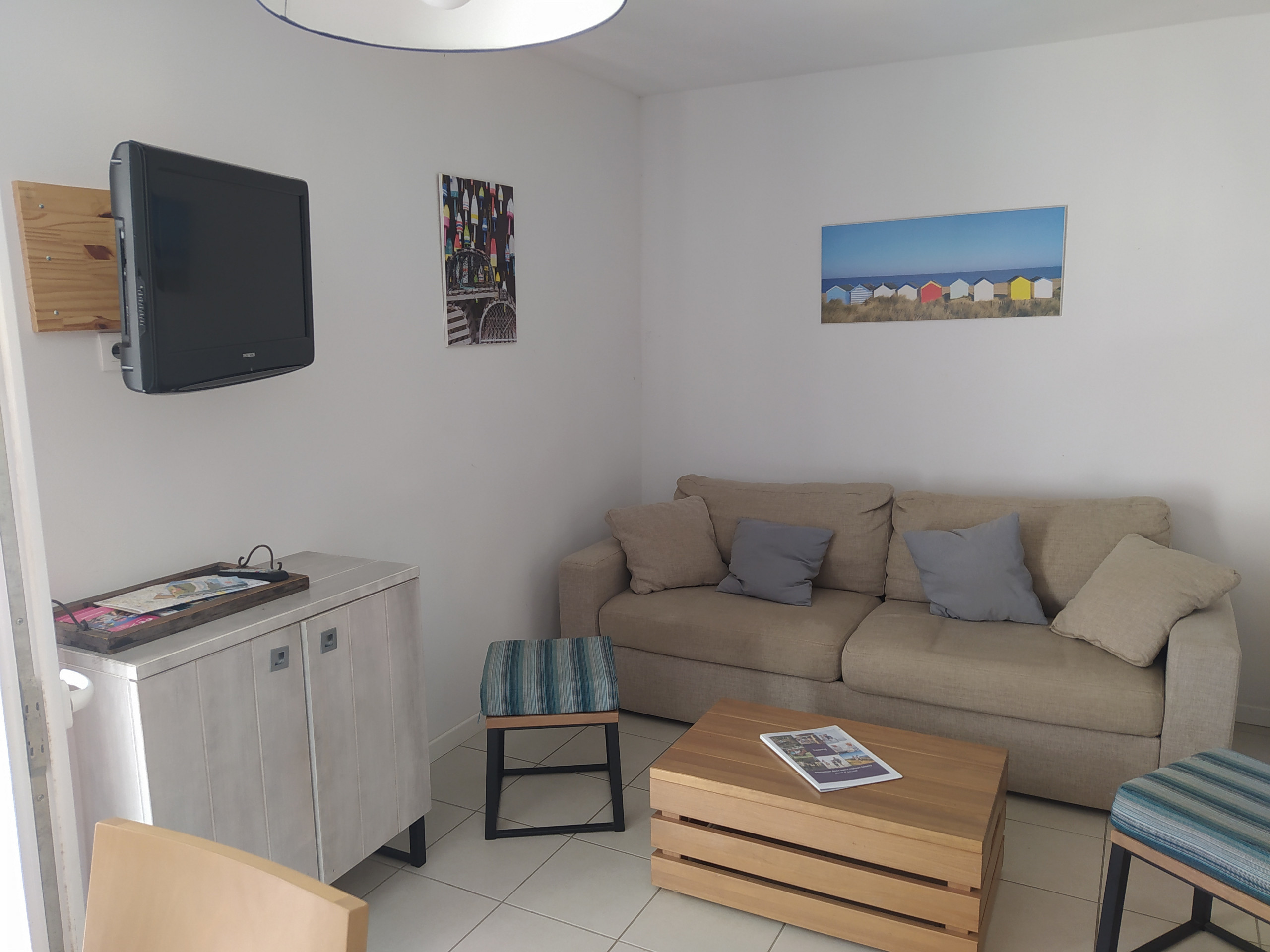 Clean, functional, spacious, the house-flat offers a pleasant holiday accommodation for 4 or 6 people. Good bedding equips the beds in the two bedrooms. The double sofa bed easily unfolds in the ground floor living room. A bathroom with a bathtub and 2 toilets are distributed over the 2 levels. Families can easily gather in the living area with tiled floor, dining space and TV corner. The independent kitchen is equipped with a complete range of equipment and induction cooking. A private garden with terrace extends the stay. It has garden furniture. Within the quiet domain, designed like a Vendée seaside village, you can linger in and around the air-conditioned swimming pool. The pool is open from 15/06 to 15/09