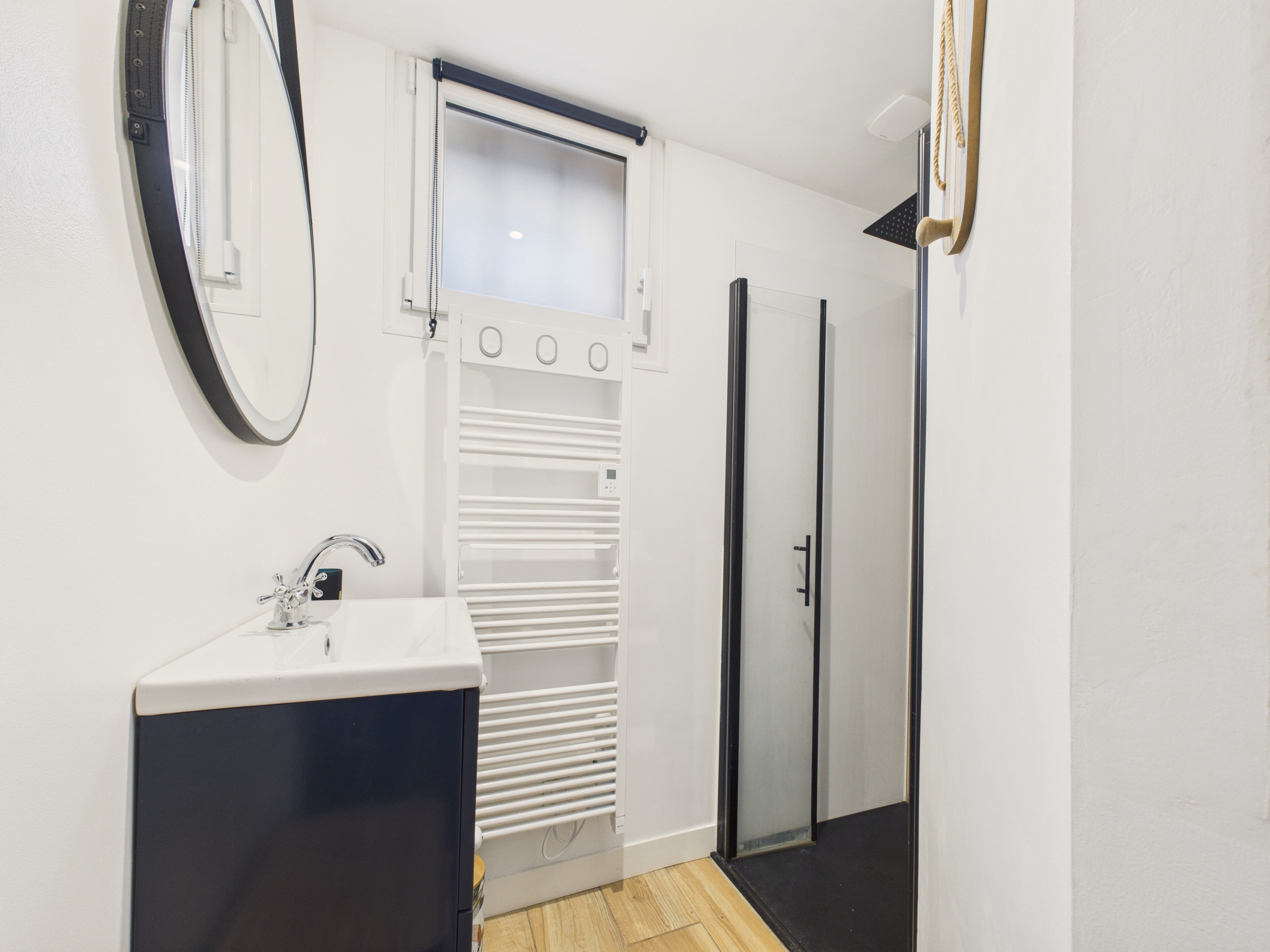 Un cuarto de baño también está disponible, con un secador de pelo y una lavadora.