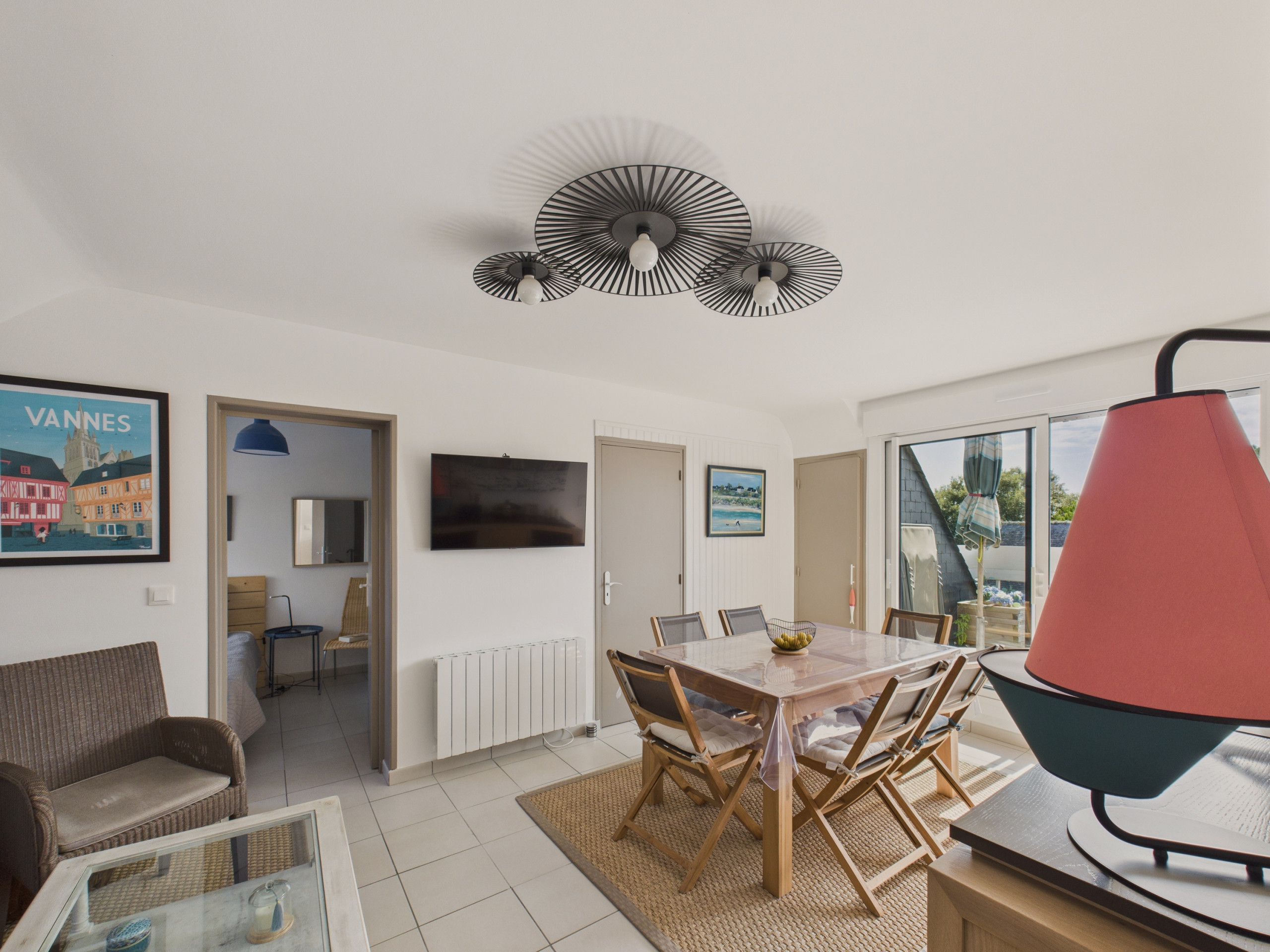 Bienvenido a este apartamento amueblado ubicado en Carnac, en la planta baja de una residencia tranquila y segura, frente a la gran playa. Completamente equipado, puede acoger cómodamente hasta 4 viajeros (2 adultos y 2 niños). Disfrutará del jardín y la terraza acondicionados para momentos de relajación al aire libre. A pie, podrá acceder fácilmente al centro, comercios y restaurantes. Nadar, actividades náuticas o paseos junto al mar marcarán su estancia.