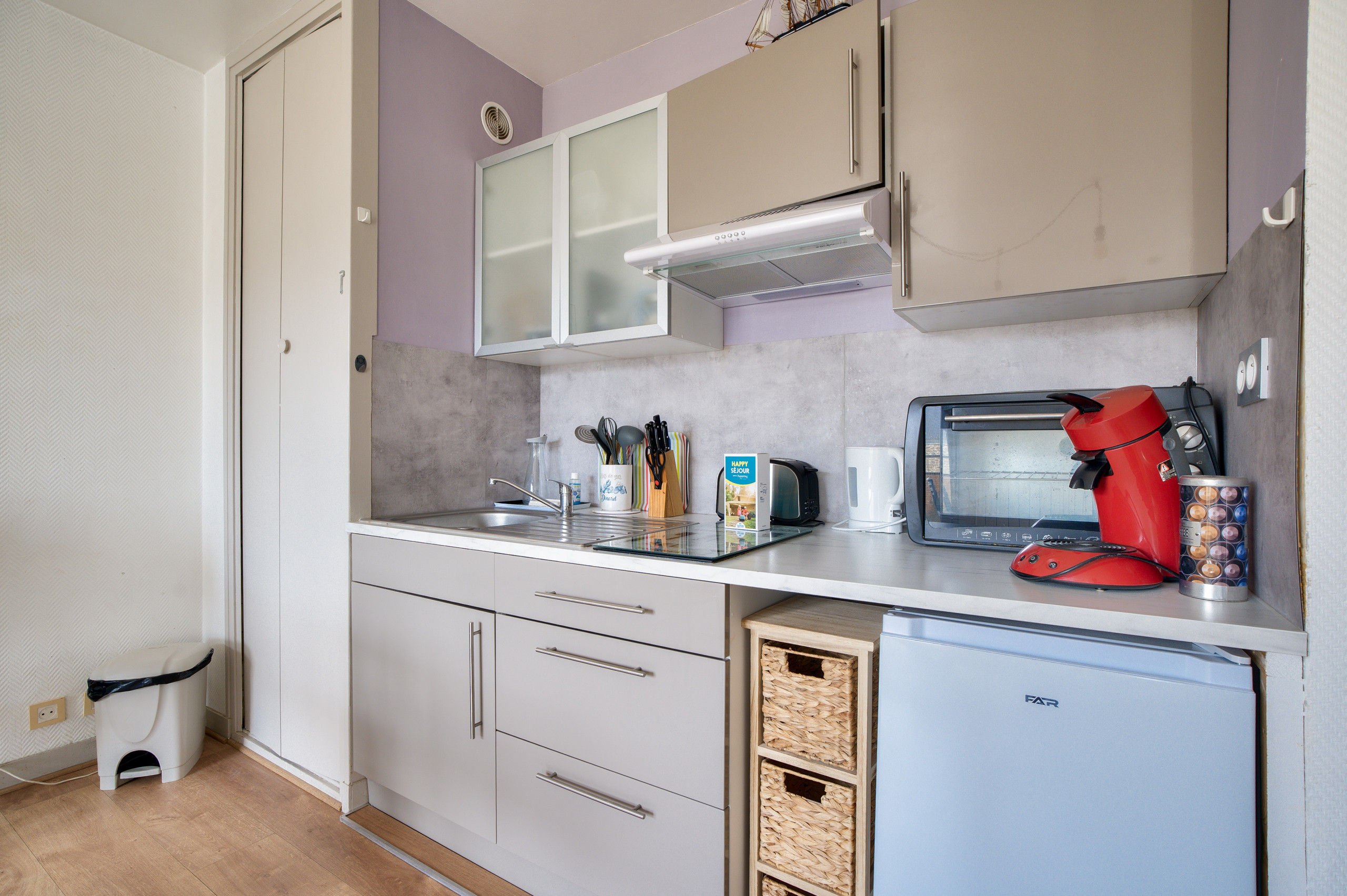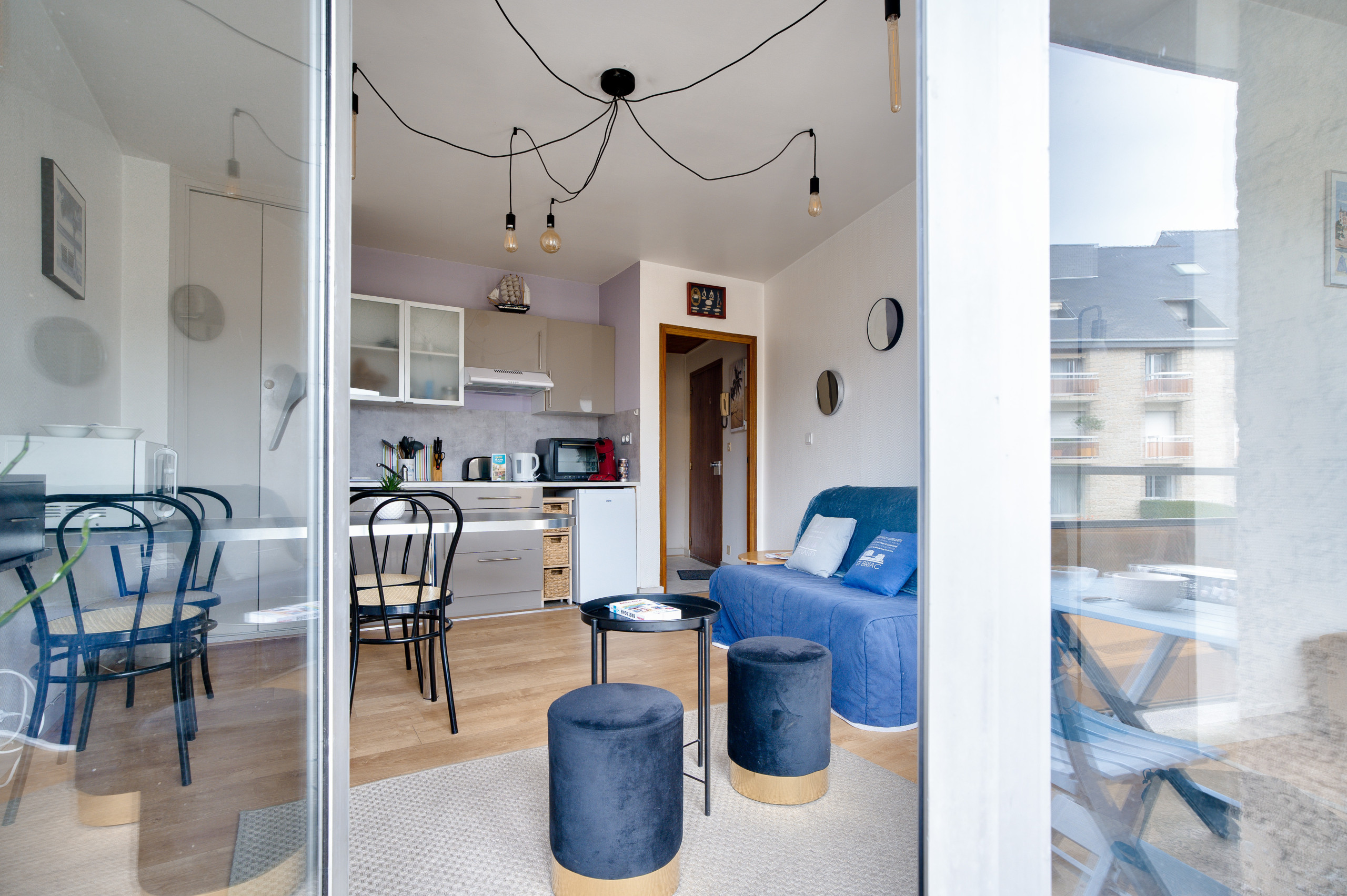 Nada más entrar, déjese seducir por la hermosa sala de estar bañada de luz natural. El salón, acogedor y amigable, está diseñado para sus momentos de descanso después de un día en la playa o de descubrimiento. Encontrará un sofá cómodo, una televisión y un acceso directo a un balcón equipado con una pequeña mesa y sillas para disfrutar del aire libre. La cocina abierta, moderna y funcional, está equipada con placas de inducción, frigorífico, microondas, horno, cafetera Senseo, tostadora, hervidor y todos los utensilios necesarios para preparar deliciosas comidas con toda simplicidad.
