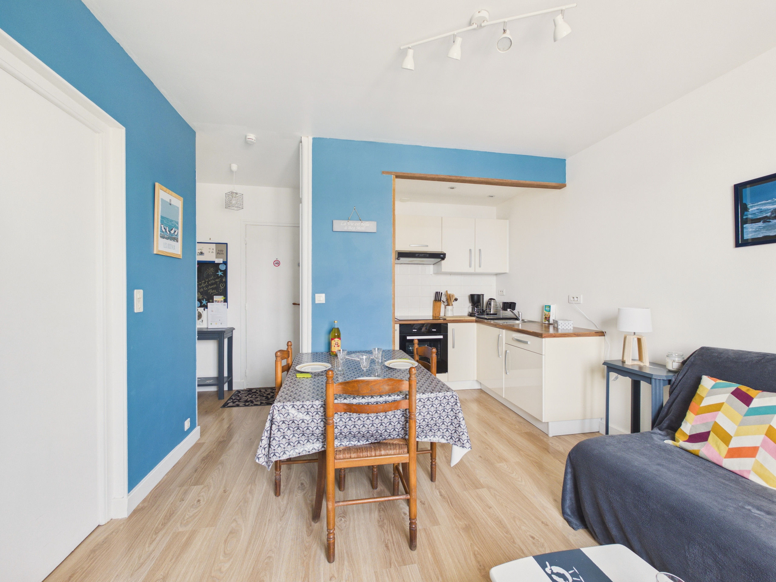Ideal en pareja, venga a descubrir este encantador apartamento que cuenta con una ubicación privilegiada. Se encuentra a solo unos metros de la playa de la Cale de Beg Meil, perfecta para un baño en sus aguas cristalinas. Desde allí, también podrá tomar el shuttle para llegar a la bahía de la Forêt en dirección a Concarneau o a las Glénans.
