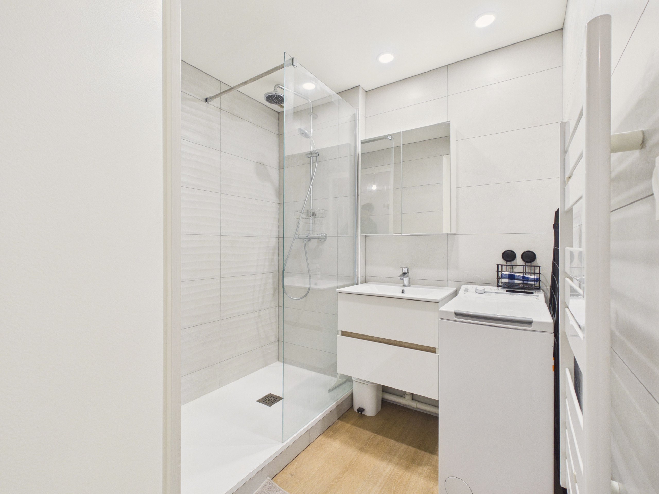 Accederá a un cuarto de baño con una lavadora y un secador de pelo, así como a un inodoro independiente.