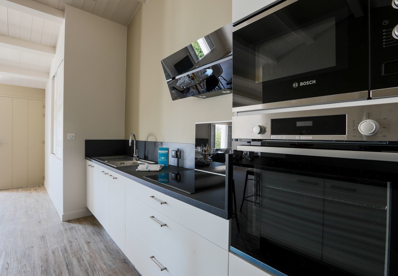 La cocina americana, equipada con una placa de inducción, dispone de un frigorífico, un microondas, un horno, un congelador y un lavavajillas. Además y para su comodidad, se ponen a su disposición una cafetera Senseo, una tostadora, una hervidor y un exprimidor de cítricos.