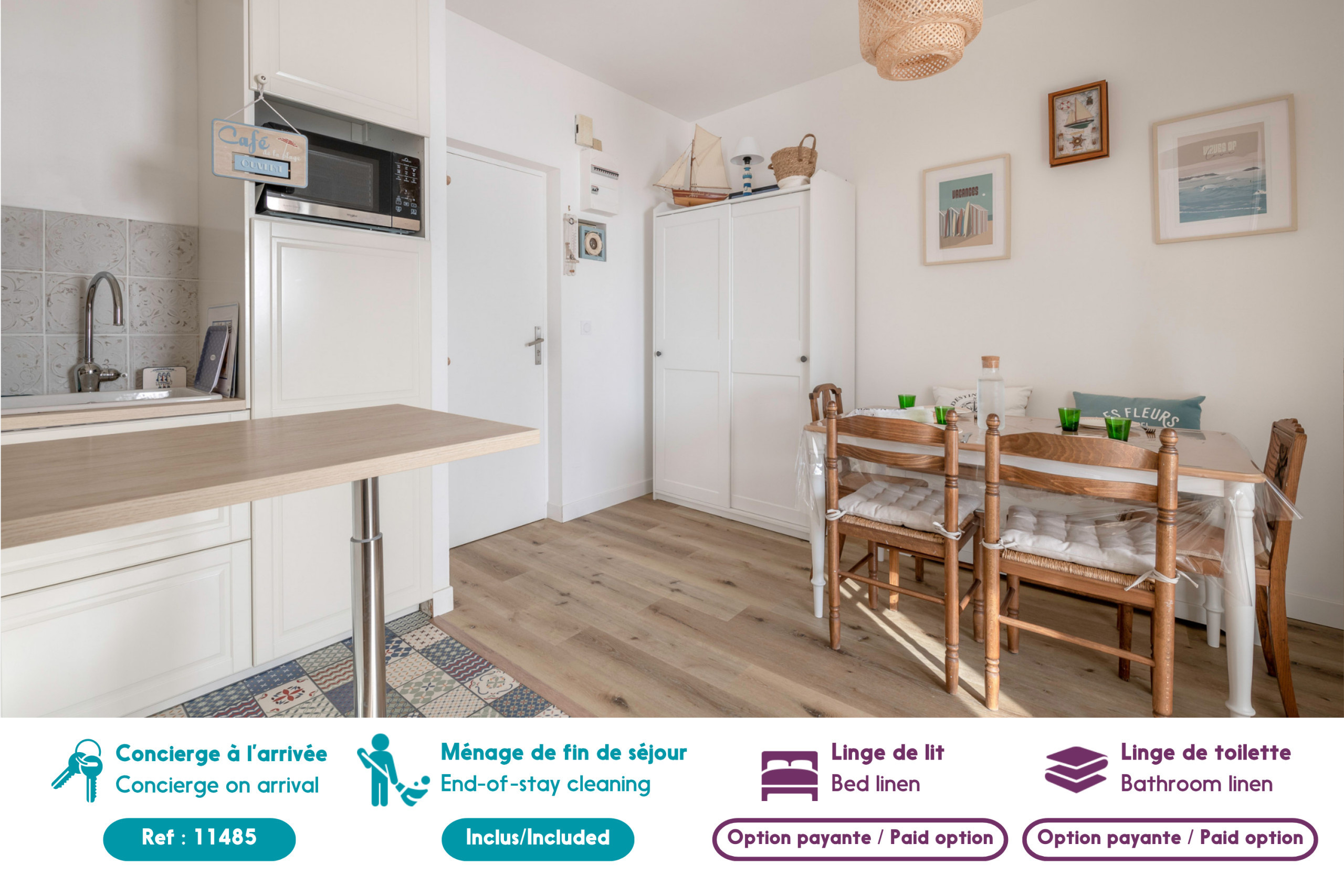Idealmente ubicado cerca del puerto, tendrá la oportunidad de pasear a lo largo de la costa, disfrutar de las terrazas y dar un paseo por el mercado. El apartamento ha sido completamente renovado y está totalmente pensado para pasar un agradable estancia en pareja, entre amigos o en familia. Al entrar, descubrirá una cocina americana totalmente equipada con placas eléctricas e inducción, frigorífico, congelador, microondas, horno, lavavajillas, utensilios de cocina, tostadora, hervidor y cafetera. La cocina se abre a un espacio de comedor donde podrá compartir deliciosas comidas en familia o con amigos. En el salón, encontrará un espacio cómodo para hacer una pausa alrededor de una taza de café, y cuando llegue la noche, se transforma en una segunda habitación con la posibilidad de desplegar el sofá cama para pasar la noche (sofá cama de marca contemporánea).