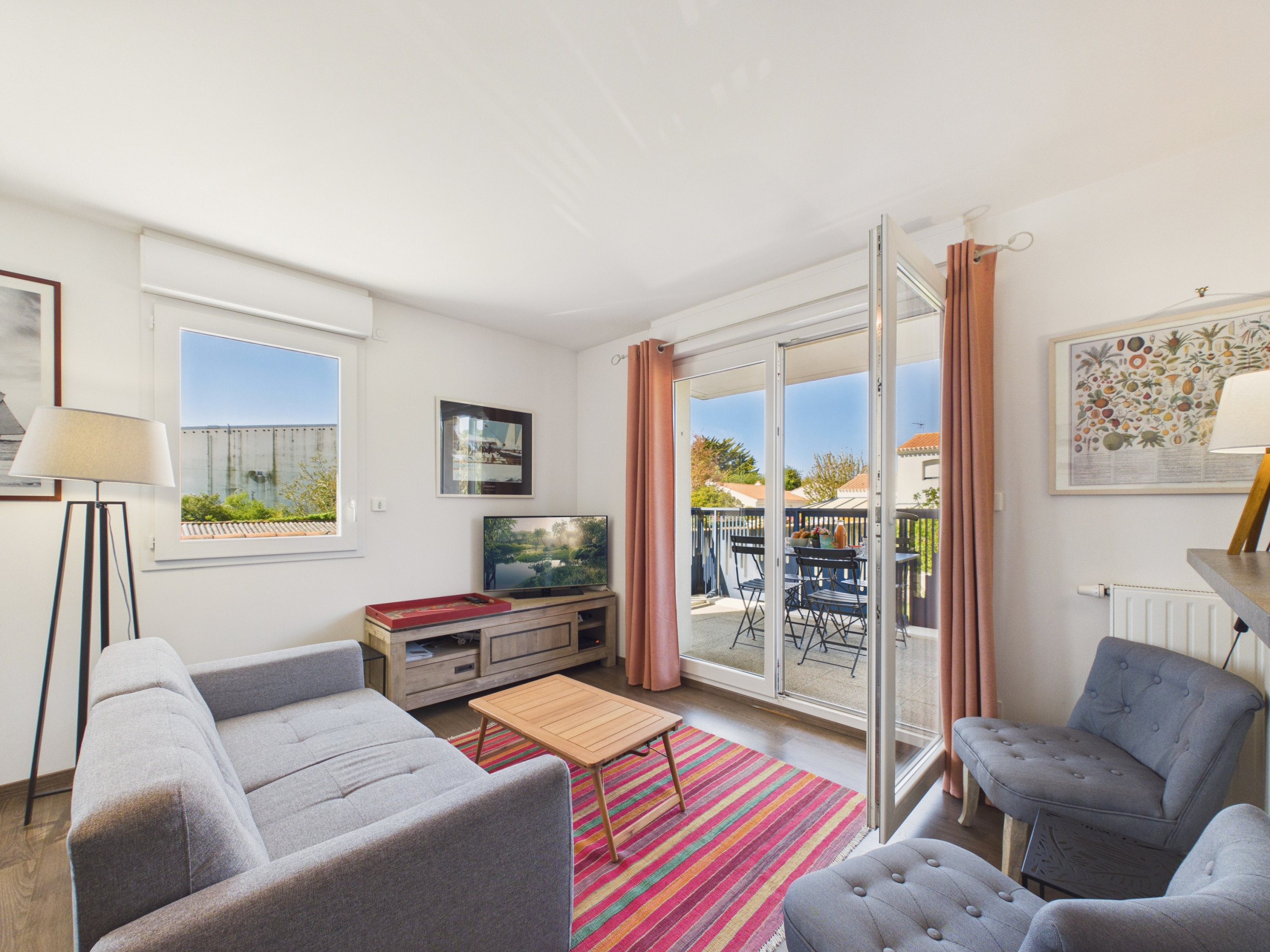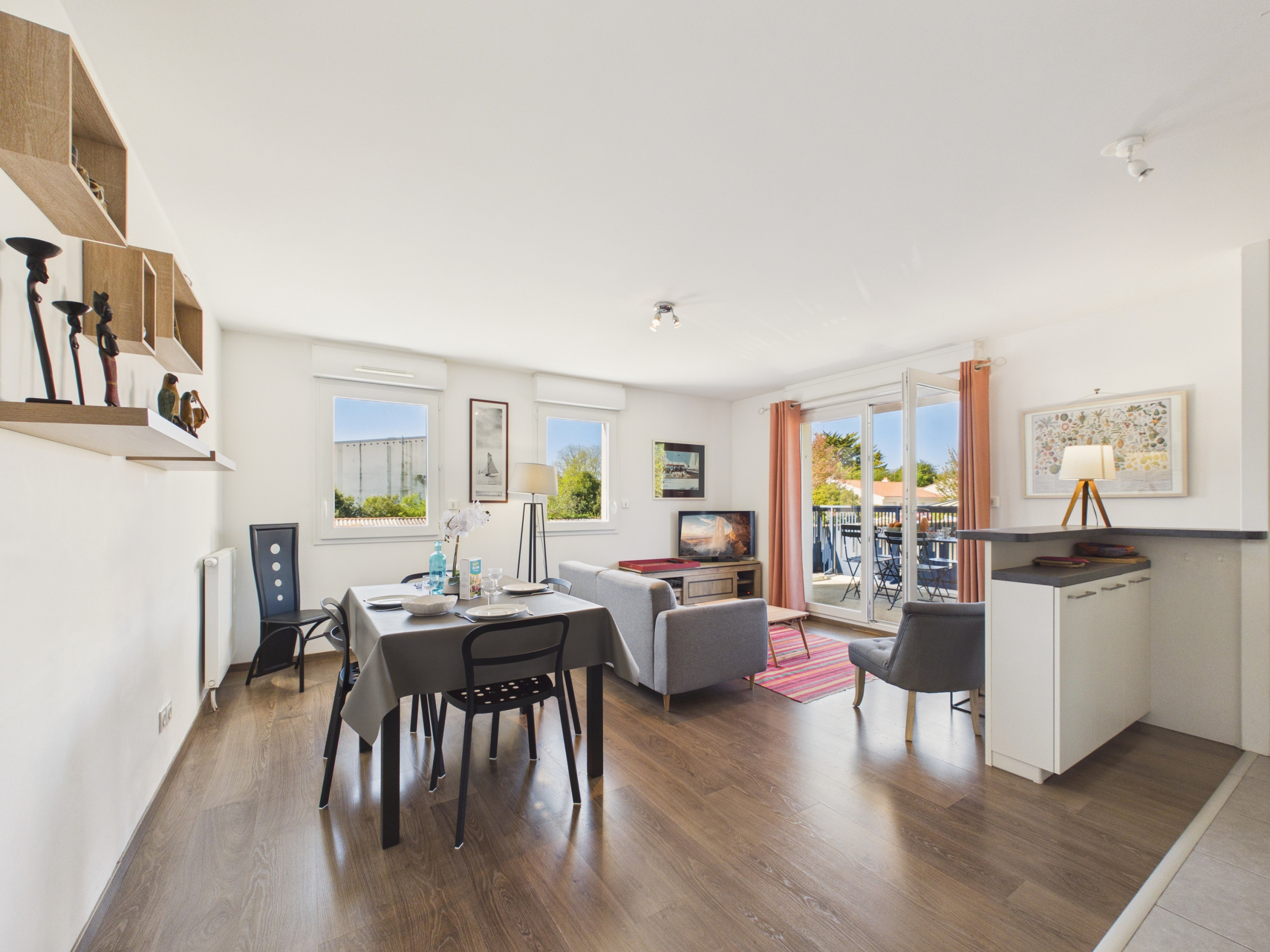 Desde su llegada, descubrirá un espacio salón con sillones y televisión, cómodo para sus veladas. Podrá compartir sus comidas alrededor de la mesa en el interior o disfrutar de la instalada en el balcón.