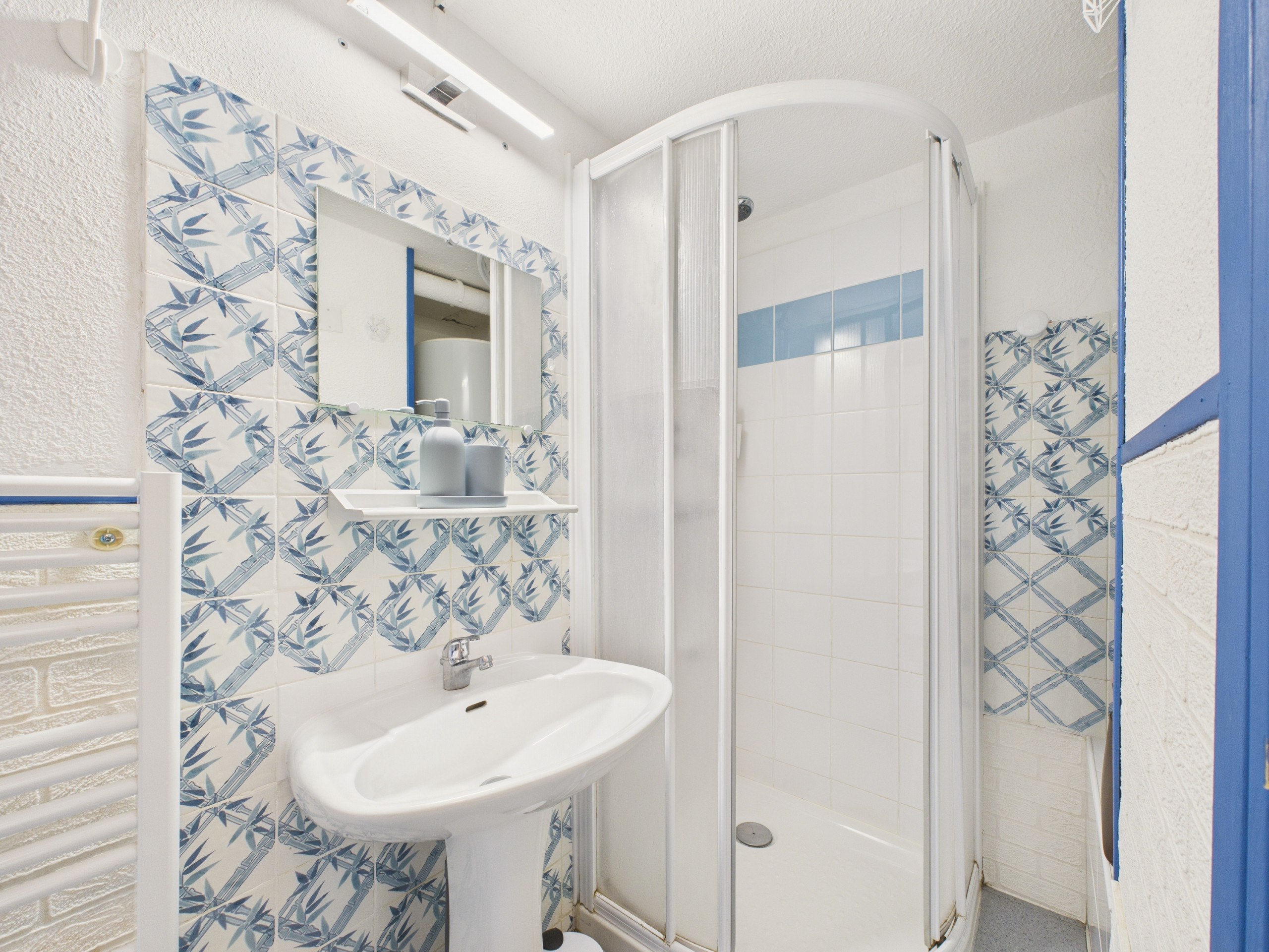 Después de su visita, encontrará el área de dormitorio, amueblada con una cama doble (140x190) y un baño con ducha. También hay una lavadora y una plancha disponibles.
