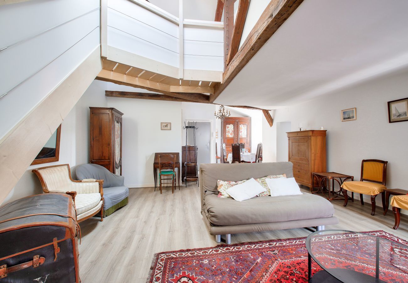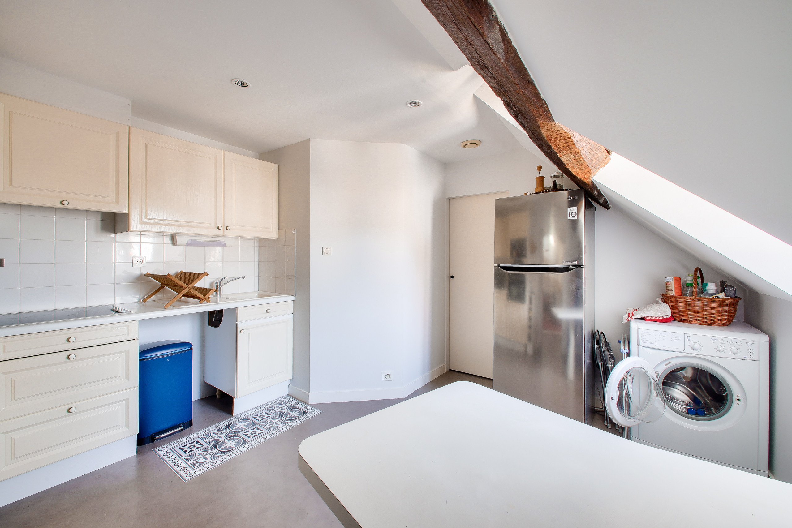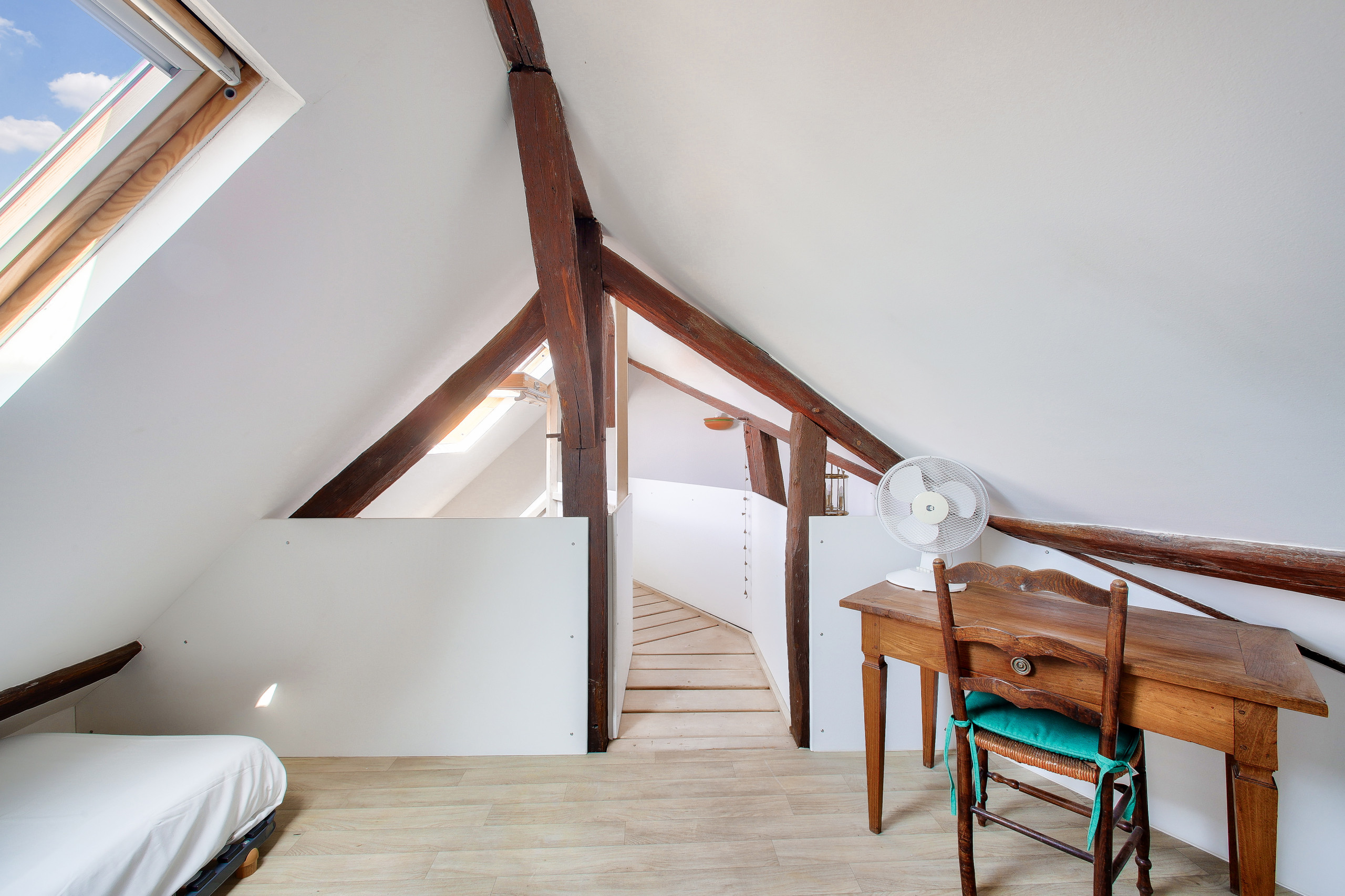 En una pequeña calle discreta de Nantes, entre la mediateca Jacques Demy y el curso Cambronne, no lejos de la elegante plaza Graslin y de numerosos bares y restaurantes que ofrecen cocinas locales e internacionales, hemos encontrado para usted este gran apartamento T2 escondido bajo los techos, en la 4ª planta (el ascensor se detiene en la 3ª planta, luego hay que subir por las escaleras). Su disposición atípica, sus vigas antiguas y sus muebles rústicos son todo el encanto de esta propiedad.