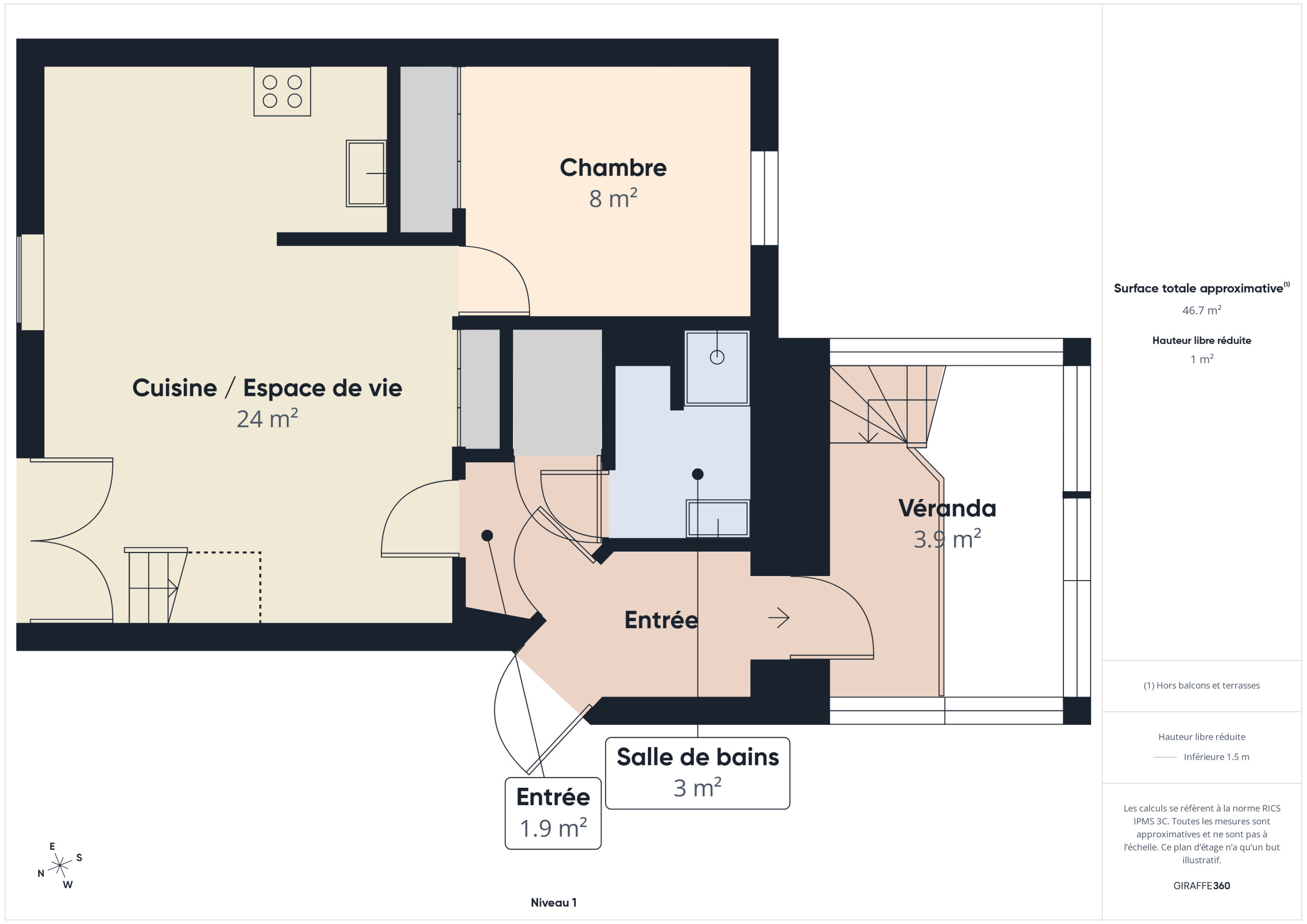 Pase por la puerta de entrada y descubra una hermosa sala de estar de 24 m² con acceso directo al balcón. La cocina abierta, completamente equipada (refrigerador, placas de inducción, horno, lavavajillas), le permitirá preparar sus comidas como en casa. Para el desayuno, también encontrará una hervidor, una tostadora, una cafetera de filtro y una máquina Nespresso. Comparta sus comidas alrededor de la mesa de comedor o disfrute de la del balcón en verano. Por la noche, relájese en el salón, cómodamente sentado en el sofá frente a la televisión.