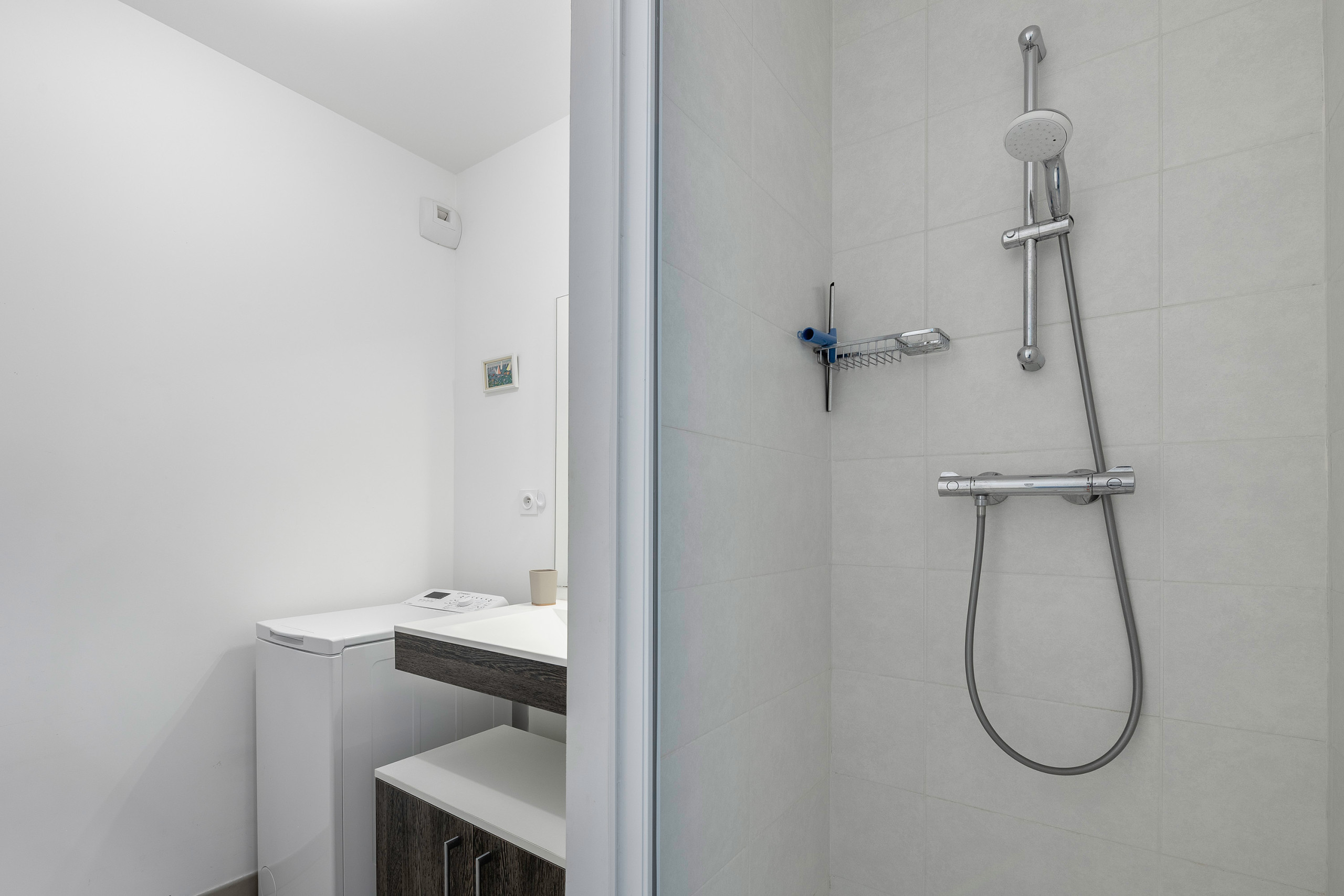 El apartamento de 40m² se encuentra en la segunda planta (con ascensor) del edificio B de la residencia «Le clos de Sainte Marie» ubicado en el corazón del pueblo de Sainte-Marie sur Mer y en las inmediaciones de la «Playa Montbeau». Todos los comercios esenciales están cerca de la residencia. El Golf Bluegreen está a dos pasos y unas líneas de autobús cercanas permiten llegar al centro de la ciudad de Pornic. Dispone de una suite principal (cama doble de 140) y puede así acoger a dos personas.