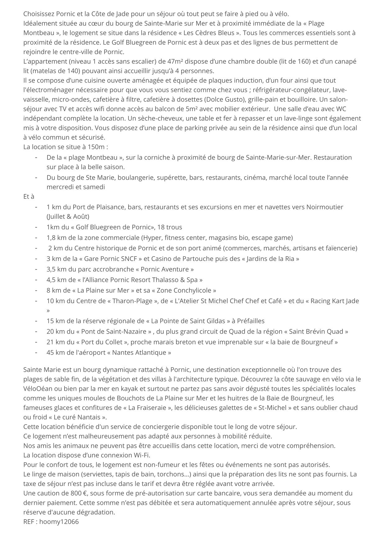 Idealmente ubicado en el corazón del pueblo de Sainte-Marie sur Mer y en las inmediaciones de la "Playa Montbeau", el alojamiento se encuentra en la residencia "Les Cèdres Bleus". Todos los comercios esenciales están cerca de la residencia. El Golf Bluegreen de Pornic está a dos pasos y hay líneas de autobús que permiten llegar al centro de la ciudad de Pornic.