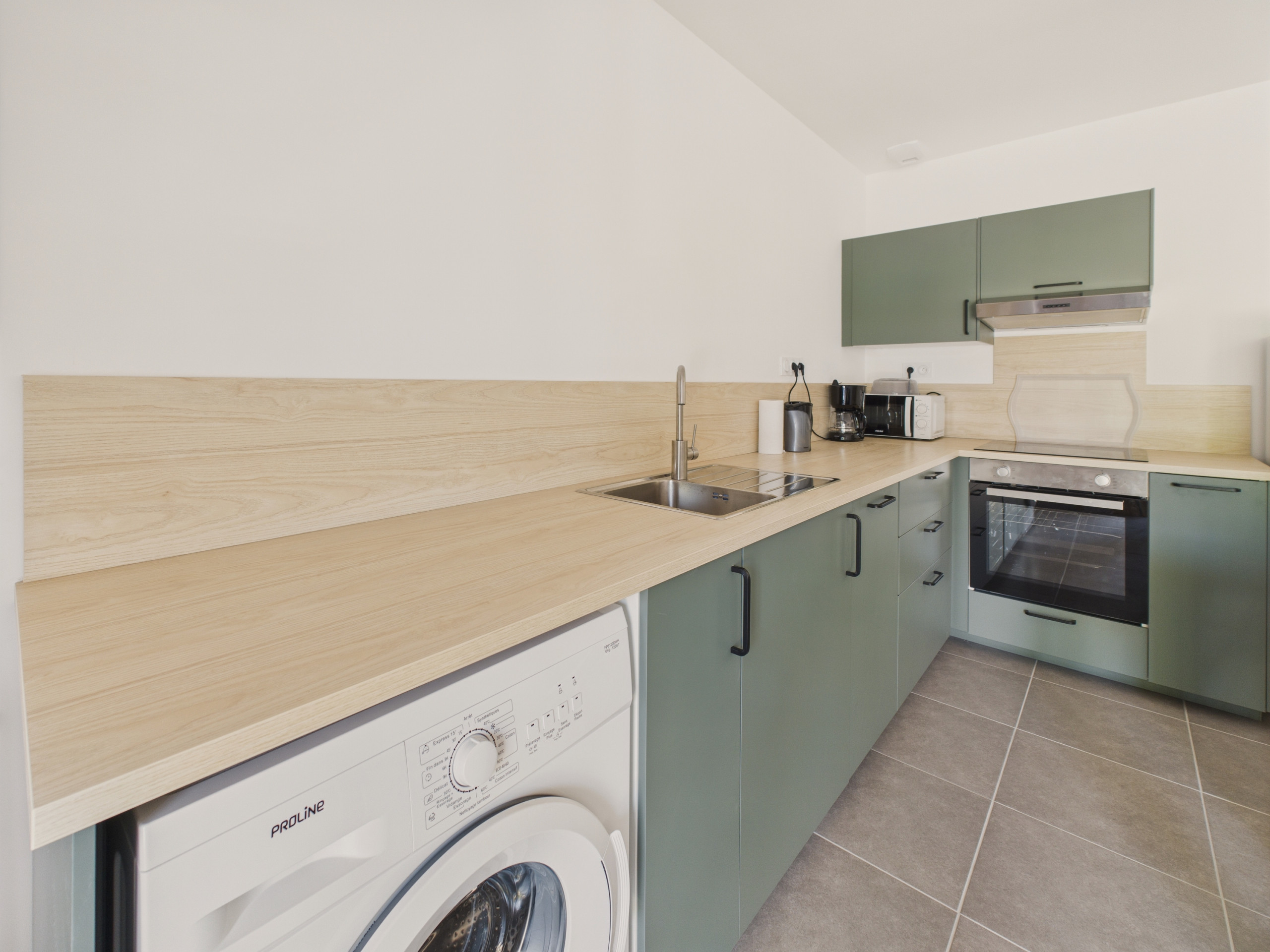 Encontrará una cocina bien equipada (placas de inducción, refrigerador, microondas, congelador, lavavajillas, cafetera, tostadora, hervidor y exprimidor) para preparar buenas comidas. Está abierta a una mesa redonda donde le gustará reunirse para saborear estos deliciosos platos y pasar momentos de risa. Después, la sala de estar le permitirá una pausa frente a la televisión. Cuando caiga la noche, podrá desplegar el sofá para acurrucarse para dormir. Finalmente, encontrará una habitación con una cama doble de tonos claros y un cuarto de baño para darse una buena ducha después de su regreso de la playa.