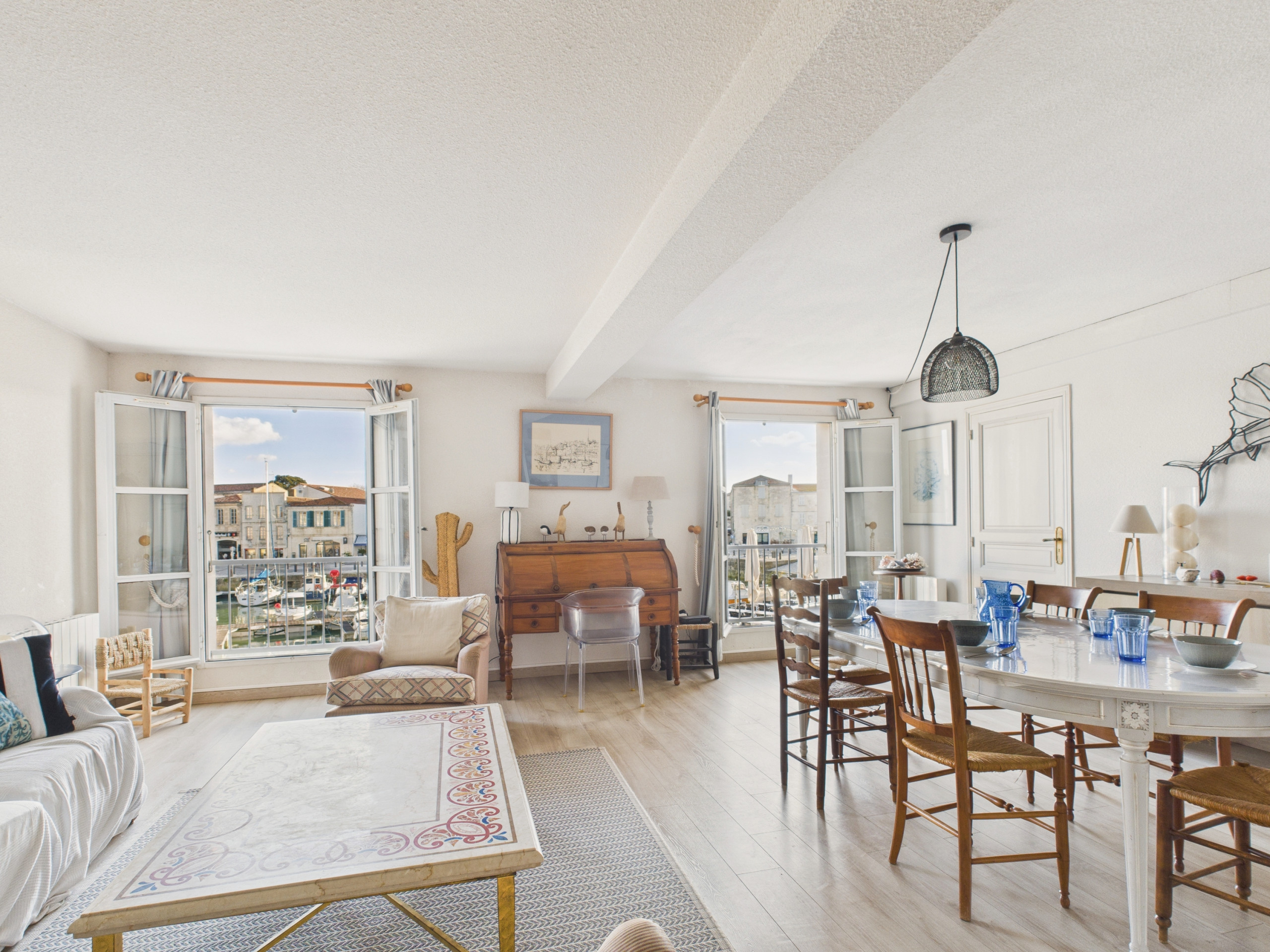 situation idyllique de cet appartement sur le port de St Martin de Ré. 3 fenêtres (salon + cuisine) en vue direct sur les bateaux). Tout à pied. Très grand appartement (125 m2). serviettes de bain ""classe hôtel"" et gel douche NUXE.