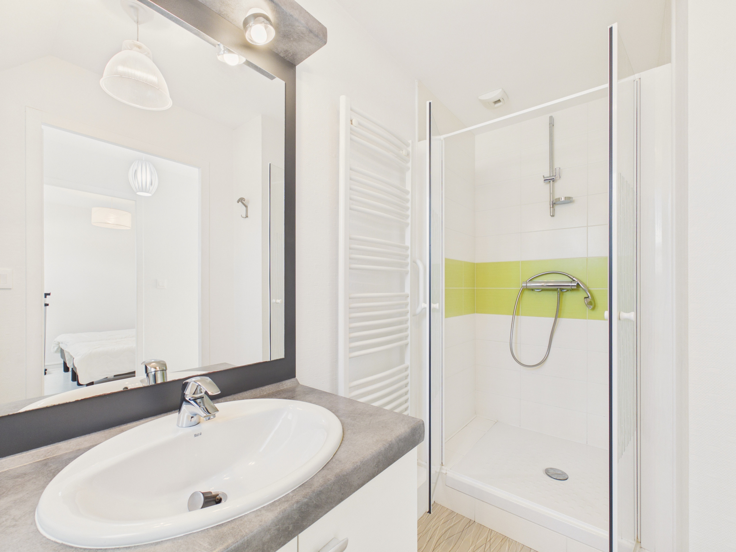 Pase por la puerta de entrada y descubra una hermosa sala de estar que conduce al balcón. La cocina completamente equipada (refrigerador, congelador, placas de inducción, horno, microondas, lavavajillas) le permitirá preparar sus comidas como en casa. Para el desayuno, también dispondrá de una hervidor de agua, una tostadora y una cafetera de filtro. Podrá compartir sus comidas alrededor de la mesa de comedor interior o disfrutar de la mesa del balcón en los días hermosos. Por la noche, reúnase en la zona de estar, cómodamente sentado en el sofá frente a la televisión.