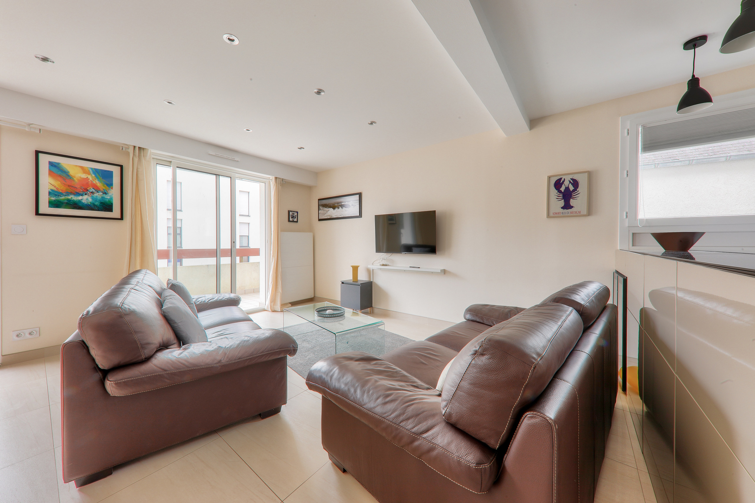 Apartamento de 57 m² acogedor y totalmente equipado en Sarzeau que cuenta con 2 habitaciones y puede albergar hasta 4 personas. Dispone de 3 balcones, con muebles de jardín, acceso a Internet por Wi-Fi y televisión, plancha y pequeño garaje (para coche urbano). La cocina americana está equipada con horno, microondas y placas de inducción, frigorífico, lavavajillas y lavadora, secador de pelo, cafetera, tostadora, hervidor y exprimidor.