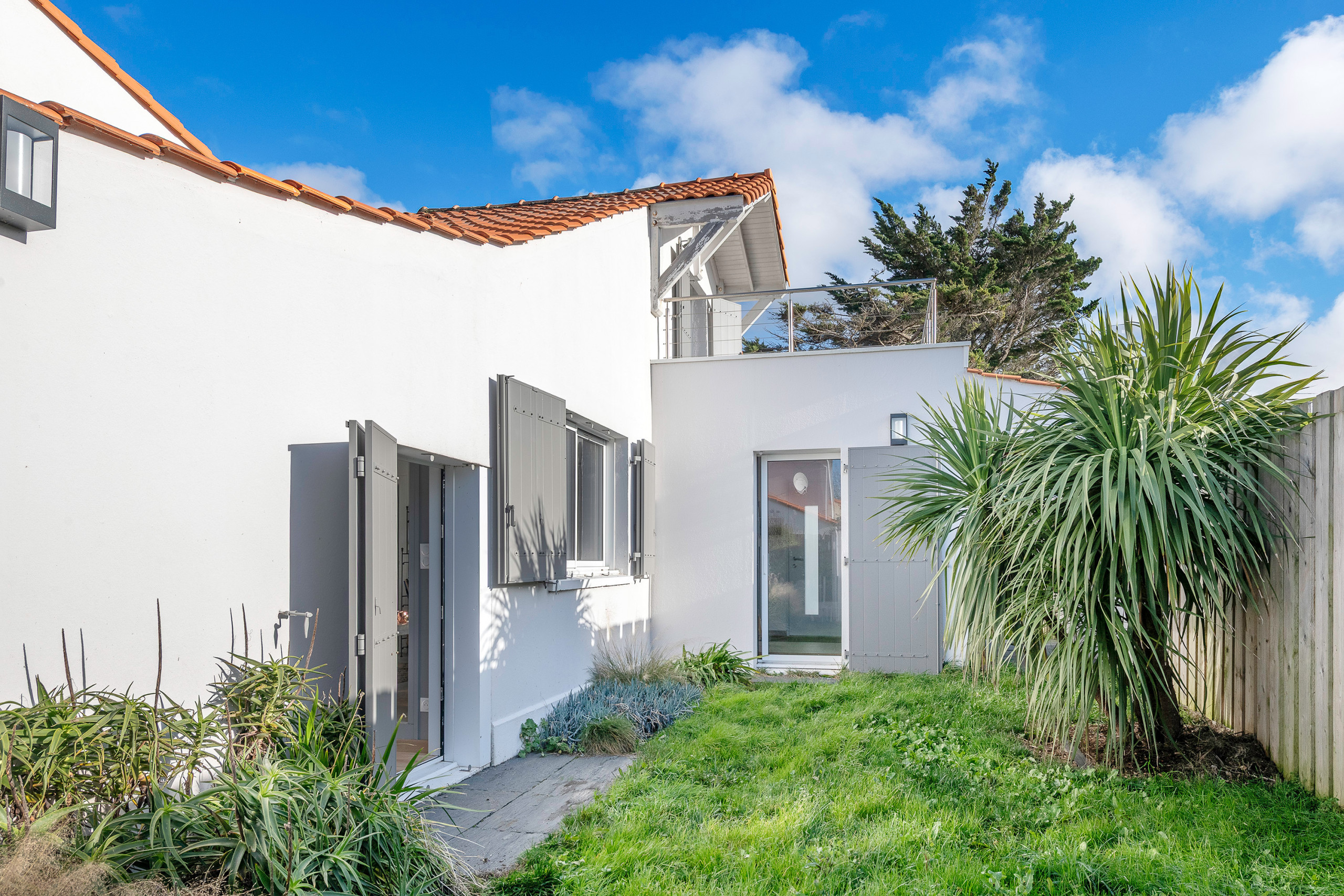 La casa puede albergar hasta cuatro personas. La planta superior incluye una habitación doble (cama de 160 cm) con acceso directo a una terraza de 8 m² con vista al mar. En la planta baja se encuentra una segunda habitación equipada con una litera (el nivel superior no es adecuado para niños menores de 6 años).