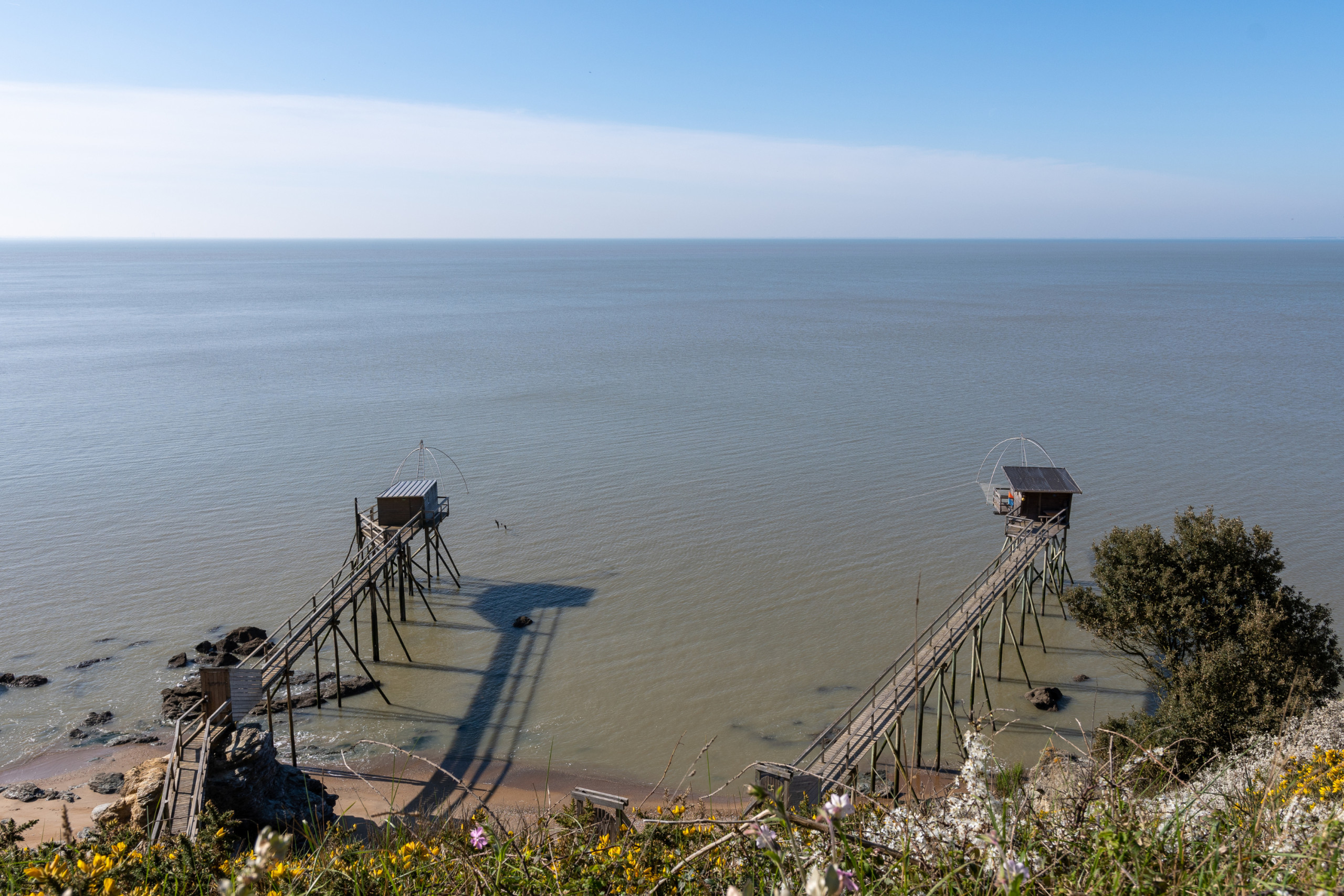 Comparta momentos agradables y cree recuerdos de vacaciones en la gran playa de arena fina, o en la orilla del famoso "Gran plan de agua de mar" seguro y accesible para todos, que le permitirá darse baños cálidos a cualquier hora de la marea. Tome los senderos que salen de La Bernerie y admire el panorama de la Bahía de Bourgneuf y la isla de Noirmoutier. Luego, diríjase al centro del pueblo de Moutiers y descubra la magnífica linterna de los Muertos, única en Loira Atlántico. Entre dos baños y partidas de pesca a pie, pasee por los muelles de la cercana Ciudad de Pornic. No se vaya sin haber degustado todas las especialidades locales como los únicos Mejillones de Bouchots de La Plaine sur Mer, los famosos Helados y mermeladas de "La Fraiseraie", las deliciosas Galletas de "St-Michel" y sin olvidar tan bueno caliente o frío "Le curé Nantais".
