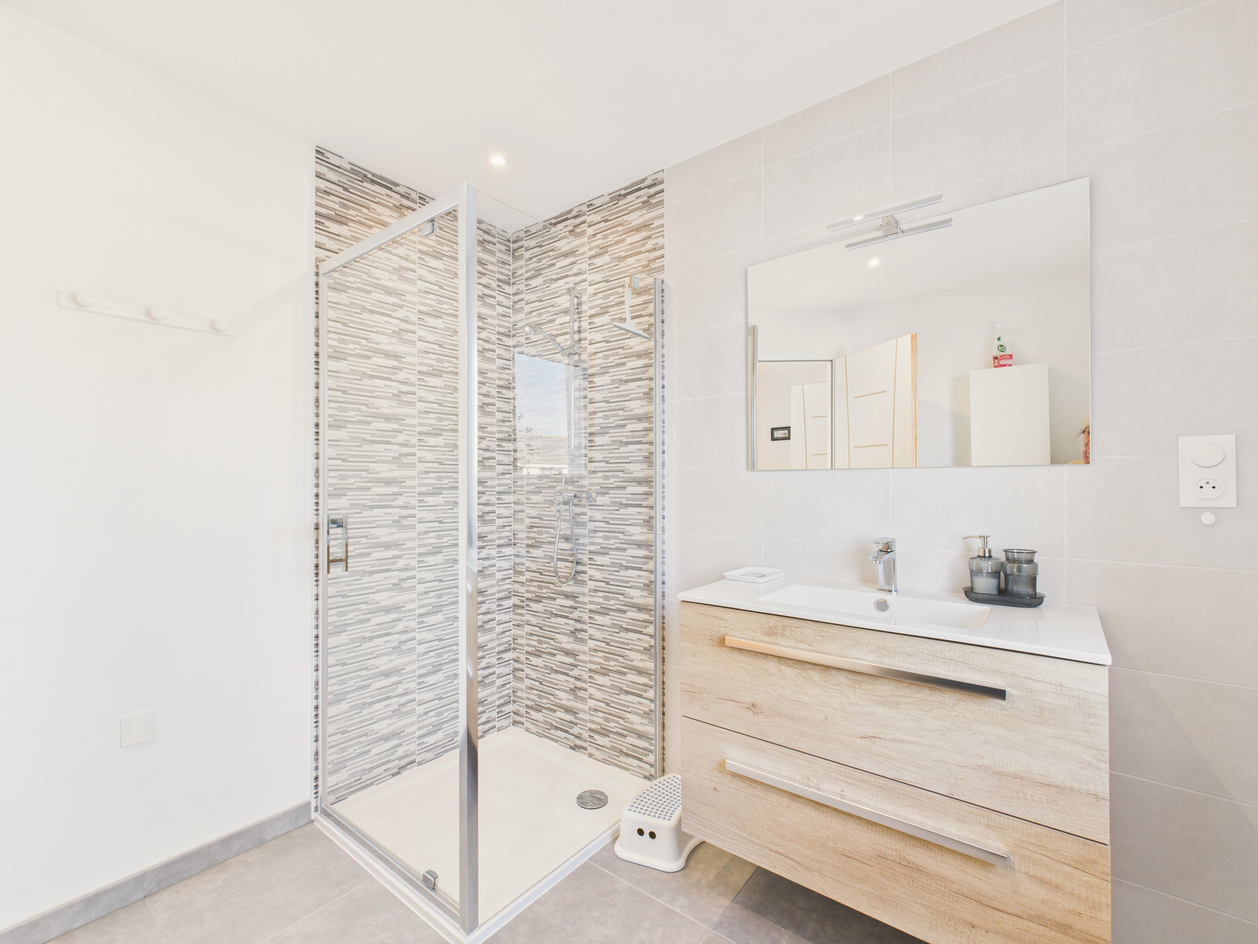 Un baño común con ducha y secador de pelo está ubicado en la planta superior. Dos WC independientes completan la vivienda.