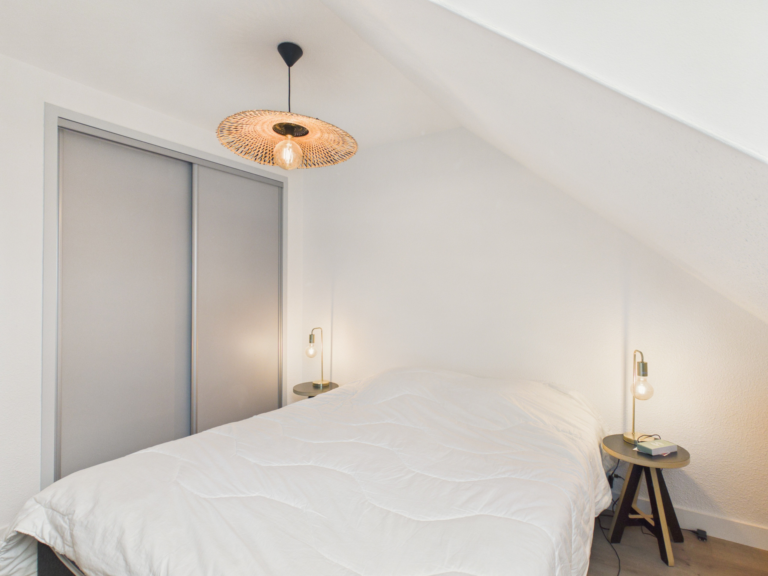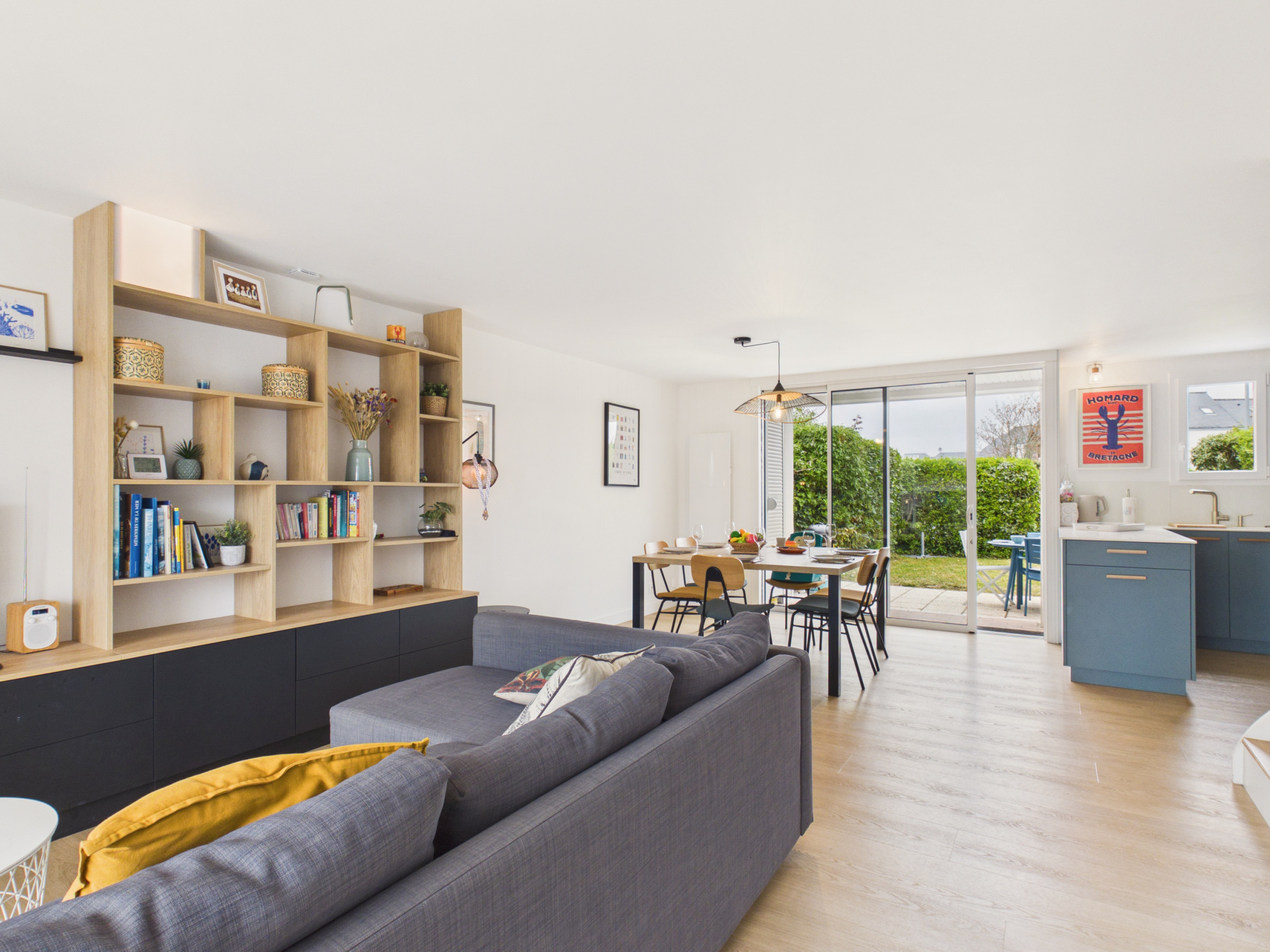 En el interior, descubrirá desde la entrada una hermosa sala de estar acogedora y luminosa. El salón, equipado con un sofá cómodo y un televisor, se abre al exterior gracias a un gran ventanal que aporta una hermosa luminosidad. En su prolongación, el espacio comedor dispone de una mesa que puede acoger hasta 6 personas y cuenta con un segundo ventanal que da al otro lado del jardín. La cocina americana, moderna y totalmente equipada (placas de inducción, refrigerador, congelador, horno, microondas, lavavajillas, cafeteras de filtro y Nespresso, tostador, hervidor), está abierta a la sala de estar para mayor convivialidad.