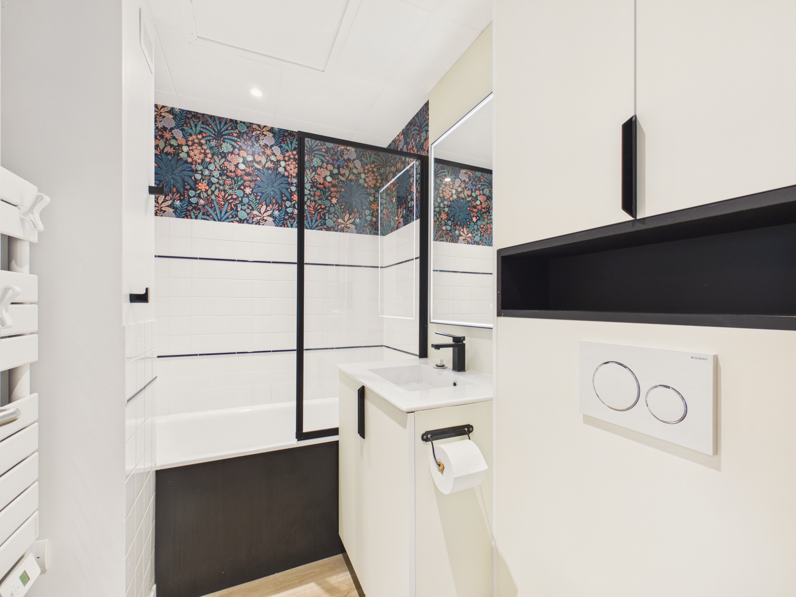 Dos cuartos de baño completan la vivienda: uno con bañera e inodoro, el otro con ducha, secador de pelo, así como un inodoro independiente.
