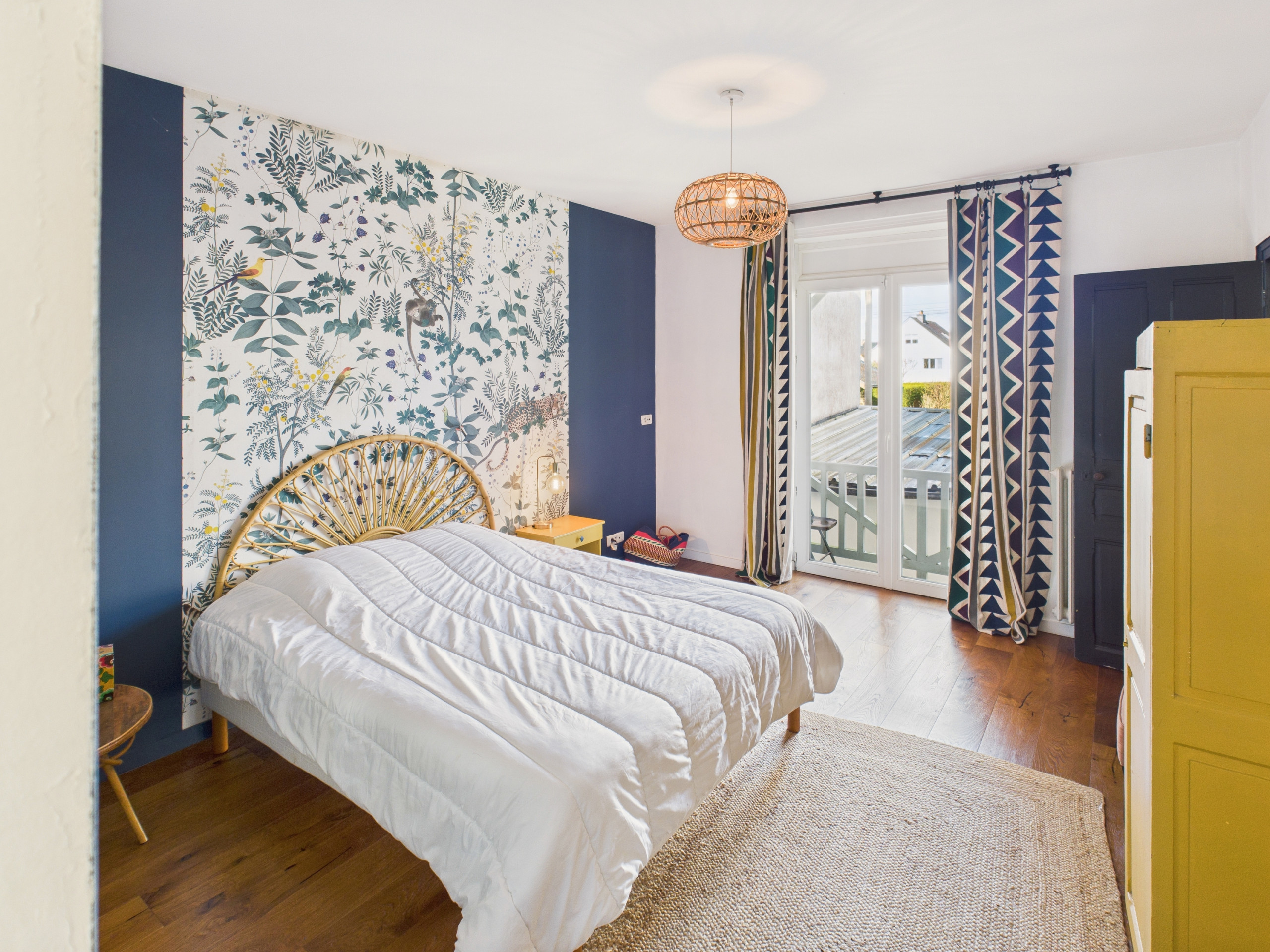 Habitación 1 - 1er piso: cama queen size (160x200 cm) con acceso al balcón.
