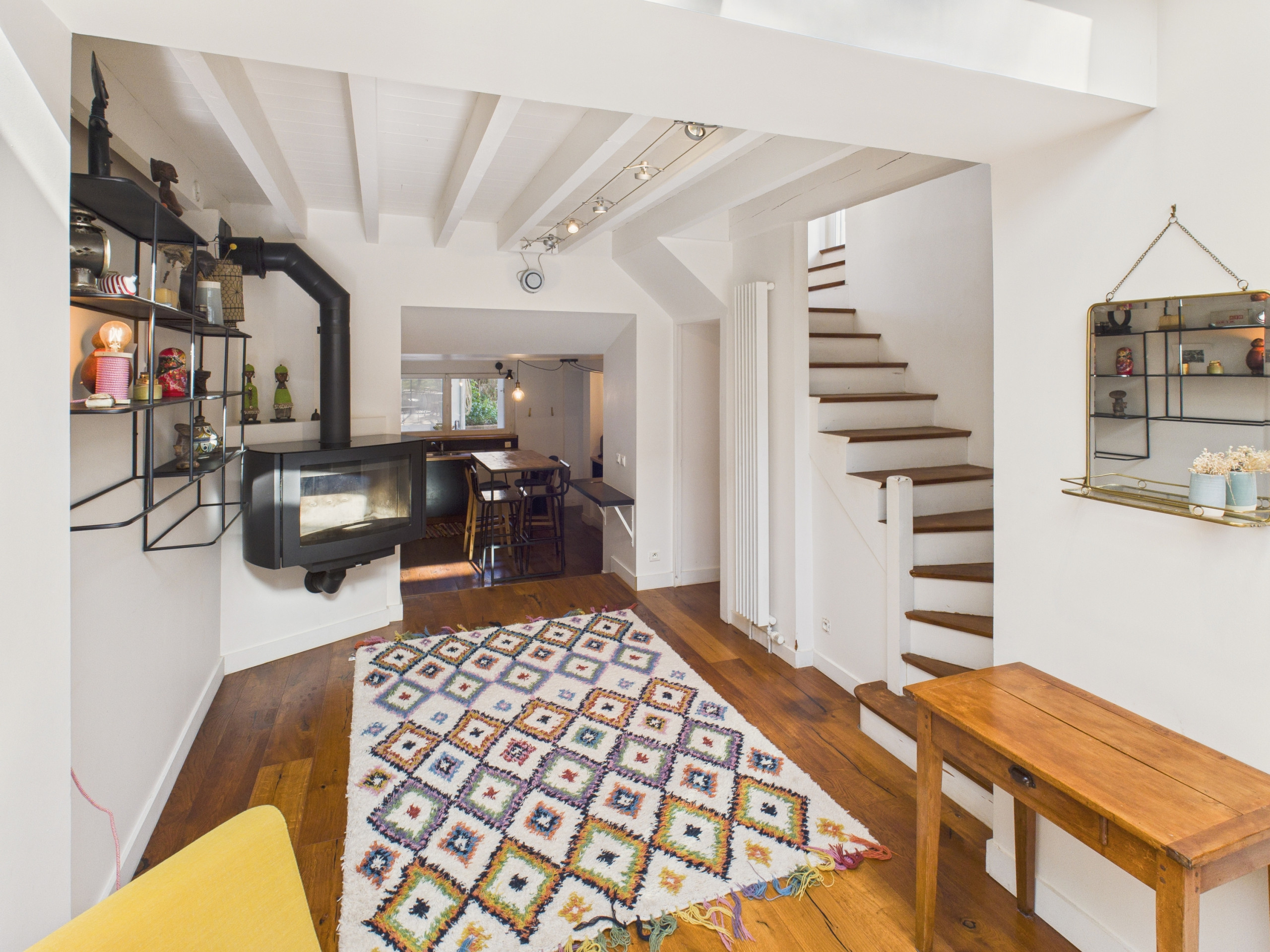 Cruce la puerta de entrada y descubra un interior moderno, bellamente decorado e inundado de luz. La cocina independiente, completamente equipada (refrigerador, horno, microondas, lavavajillas y placas de inducción), le ofrece todo lo necesario para preparar sus comidas. Para el desayuno, una tostadora y una cafetera DeLonghi (café molido) también están a su disposición. Comparta sus comidas alrededor de la mesa de la cocina o disfrute de la del exterior en los días hermosos. Por la noche, relájese en el magnífico salón, dotado de un pozo de luz y cómodos sofás.
