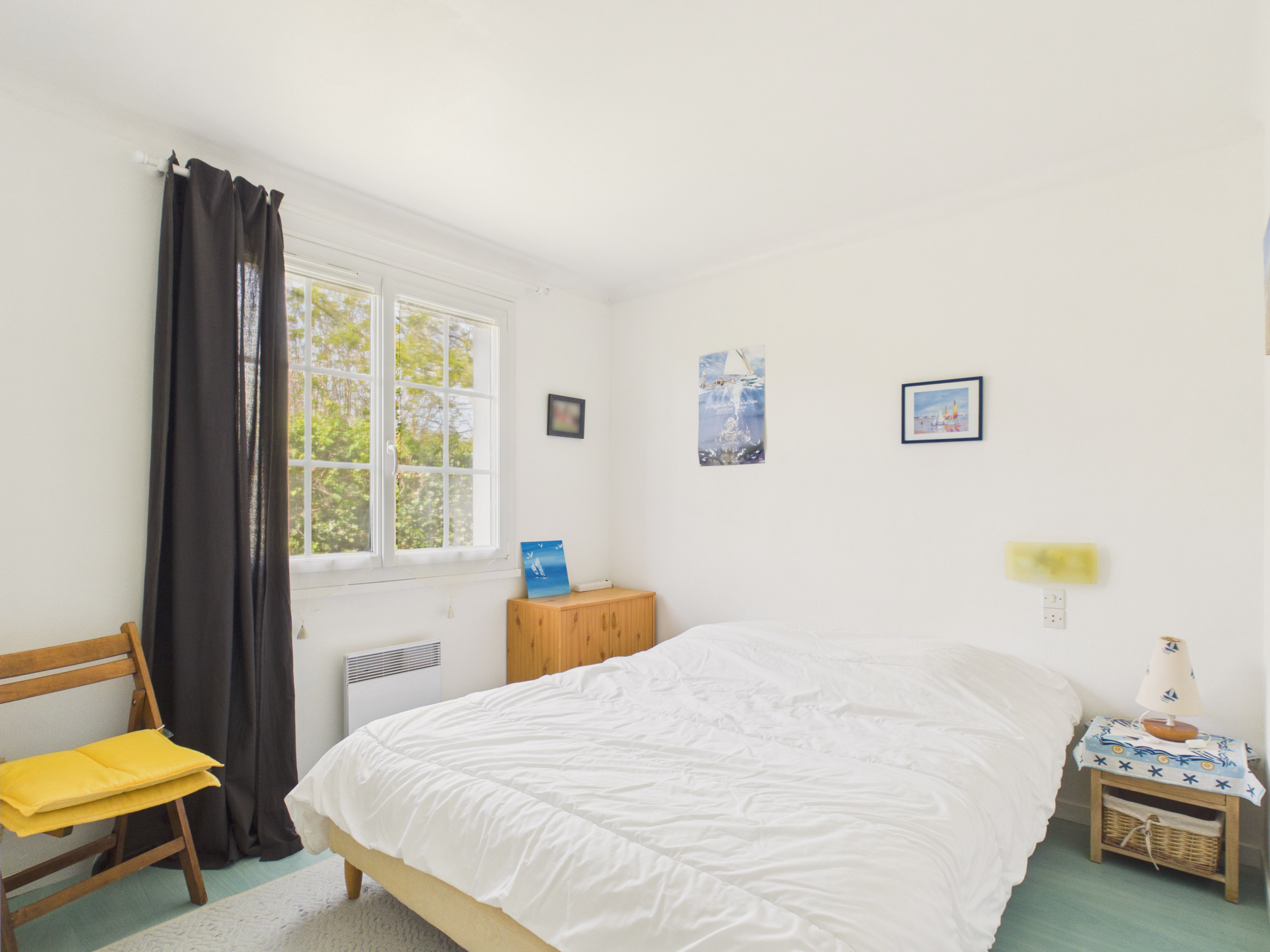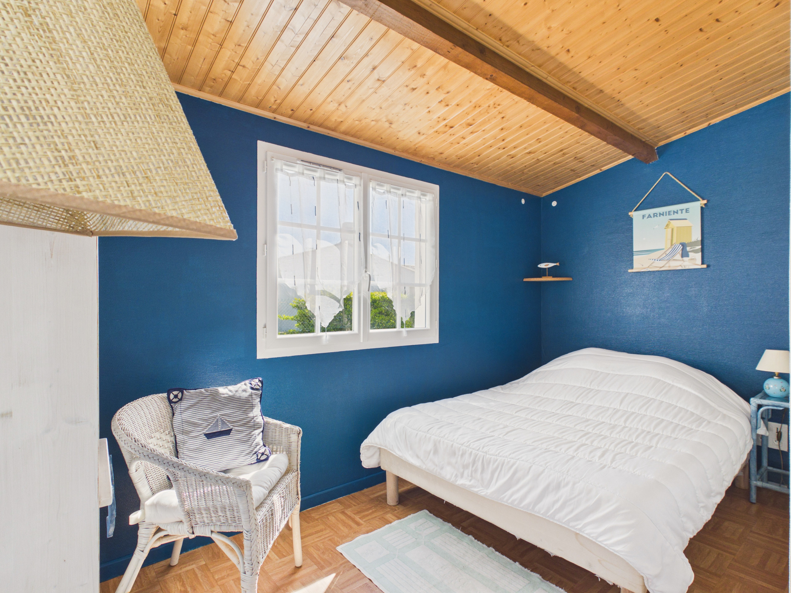La casa puede albergar 8 personas (4 adultos y 4 niños) gracias a sus tres habitaciones. La primera, amarilla con un suelo colorido, cuenta con una cama doble. La segunda, donde impera la madera, también está equipada con una cama doble. Finalmente, la última será la alegría de los niños con sus dos camas superpuestas, permitiéndoles revivir su día antes de dormir y crear hermosos recuerdos de vacaciones.