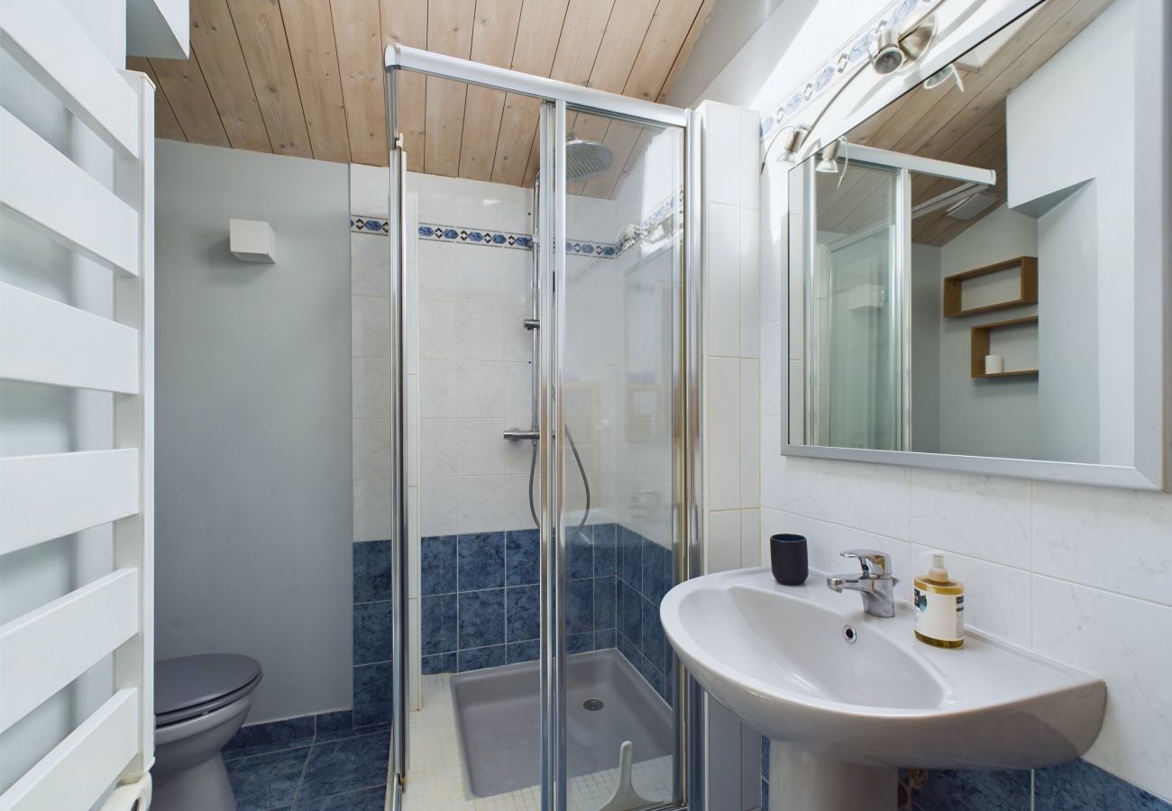 Las paredes blancas, los techos de tejas y los revestimientos de ladrillo se destacan muy bien contra el entorno verde del gran jardín. La casa de 132 m2 tiene 4 dormitorios con camas para 2 personas y un dormitorio con 3 camas. Todos son acogedores con sus cabeceros y su toque acogedor. La suite principal tiene su propio baño. En total, en la casa se distribuyen 3 baños (2 con ducha, 1 con bañera) y 3 aseos, abiertos a alquileres vacacionales para 9 personas. La cocina independiente (inducción) está totalmente equipada y tiene grandes encimeras. Está junto al comedor, que se extiende a una gran sala de estar con TV, radio y chimenea. La decoración sencilla está marcada por toques refinados y familiares. La sala de estar y las salas de estar aprovechan al máximo el sol que entra por las puertas del patio. Conducen directamente a la terraza de azulejos. Los muebles de jardín y la barbacoa le permiten sentarse en el jardín arbolado y cercado.