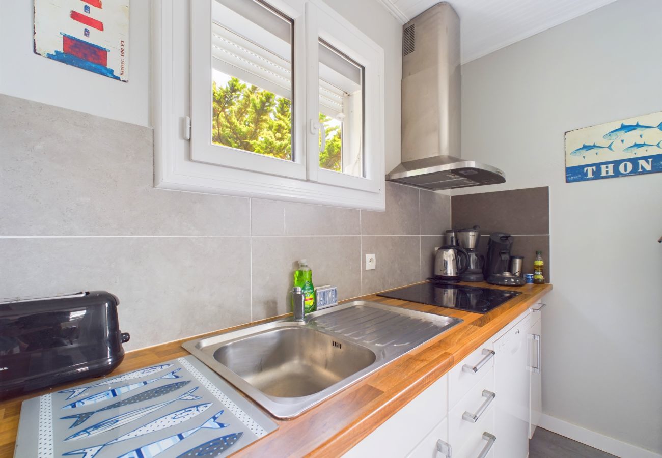 Se entra por la cocina, donde encontrará un frigorífico-congelador, un horno, un microondas y una placa de inducción para cocinar buenas comidas. Un lavavajillas también está a su disposición para evitarle esta tarea. Para los desayunos, encontrará una hervidor, una tostadora, una cafetera de filtro y una cafetera de cápsulas Senseo.