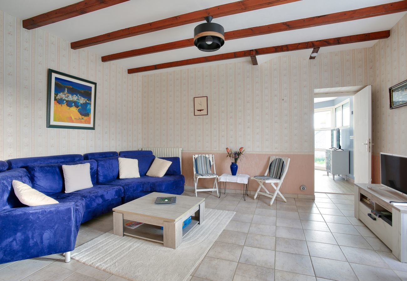 Situada en la tranquilidad del campo de Erquy, a 2 km de las playas y del centro de la ciudad, esta gran casa para 6 personas y su vasto jardín de 3000 m² os esperan.