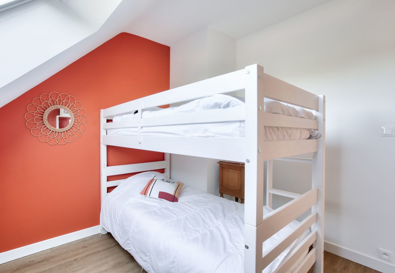 Una vez caída la noche, podrá descansar en una de las 4 habitaciones de la casa. Las tres primeras habitaciones están equipadas con una cama doble, mientras que la última está reservada para los niños con su litera. Luego encontrará un sofá-cama doble donde acurrucarse en la sala de estar.