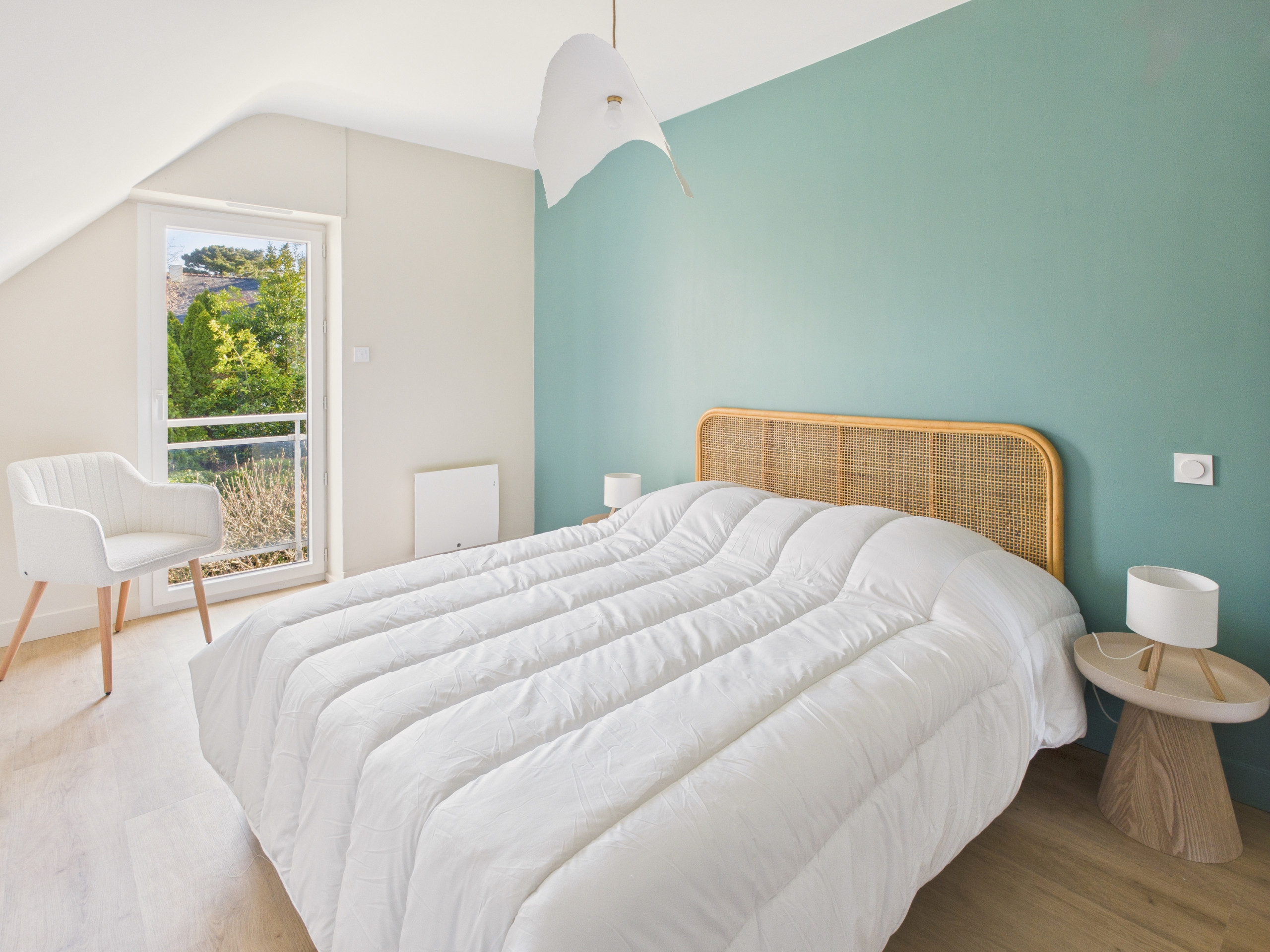 Por la noche, puede ir a descansar a una de las 4 salas. En el primer piso, la suite principal con baño con ducha y cama doble grande le brindará toda la comodidad para una buena noche de sueño. En el segundo piso, encontrará 2 dormitorios con camas dobles, ambos con un ambiente relajante y una decoración refinada. Luego, el último está en el tercer piso, está en el ático, un acogedor capullo con una cama doble.