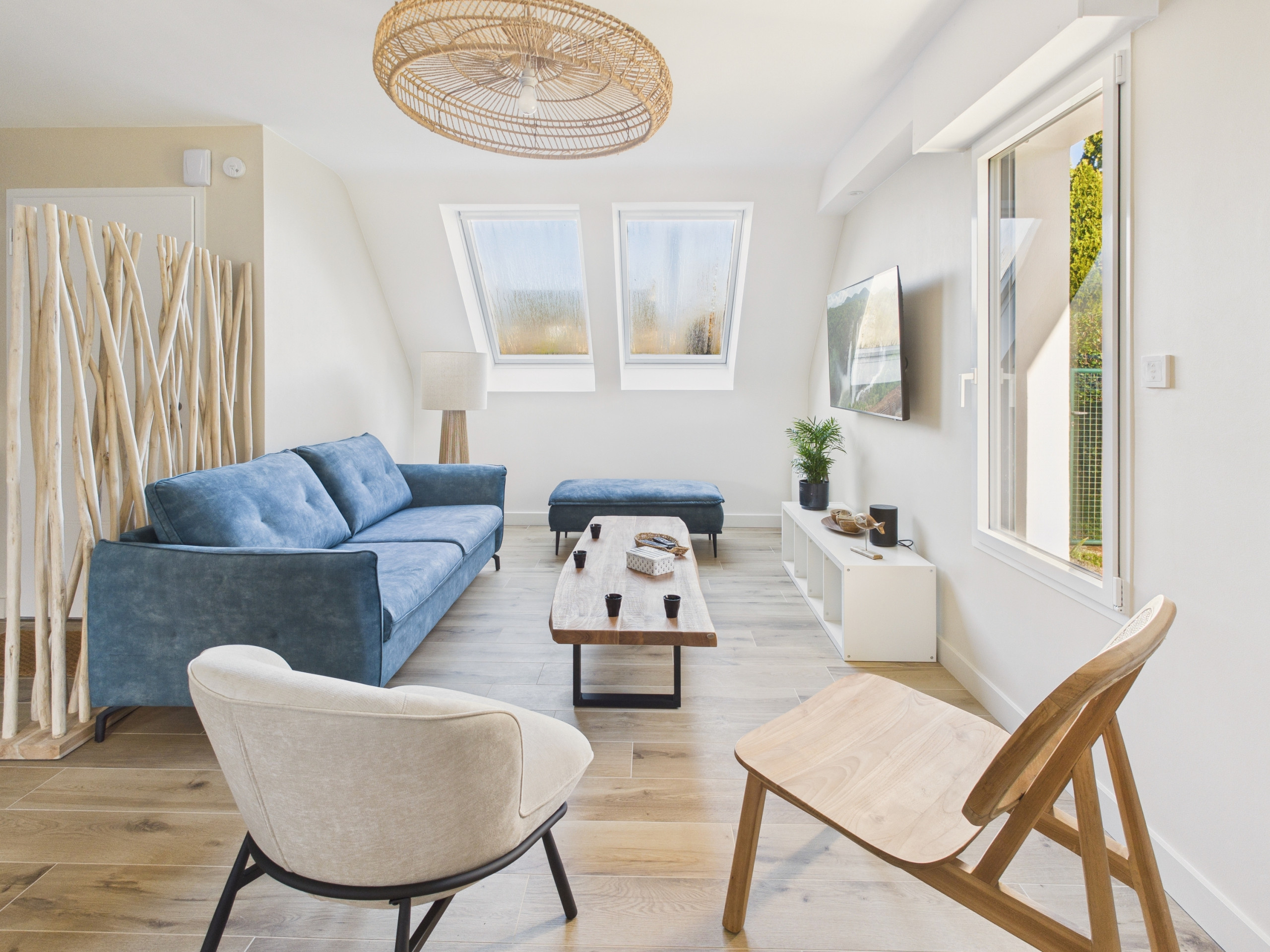 En el interior, descubra una gran sala de estar luminosa y bellamente decorada, con acceso directo a la terraza y al jardín. La cocina abierta y moderna está completamente equipada (refrigerador, congelador, microondas, horno, placas de inducción, lavavajillas y aparato de raclette) y dispone de todo lo necesario para preparar sus comidas, así como de una hervidor, una tostadora, una cafetera de filtro y una máquina Senseo para el desayuno. Comparta sus comidas alrededor de la mesa para 8 personas o disfrute de la terraza en los días bonitos. Por la noche, reúnase en la zona de estar, cómodamente sentado en el sofá frente al televisor.