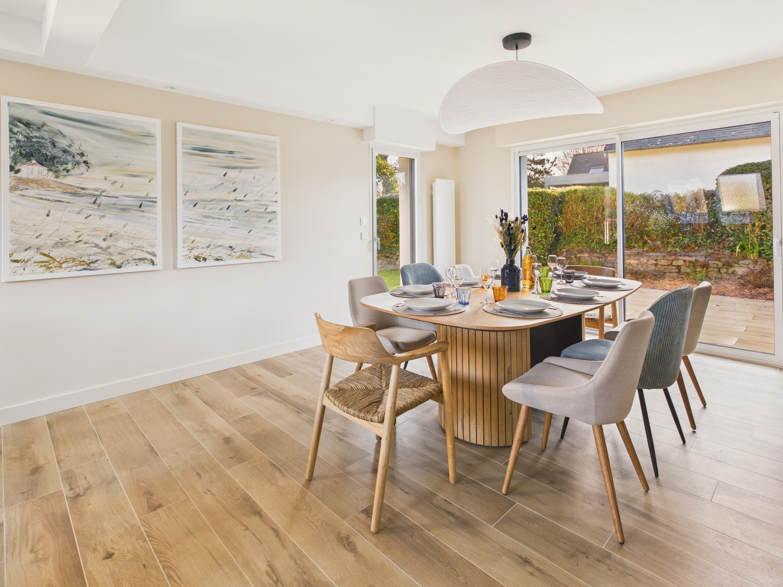 Este oasis de tranquilidad le promete unas vacaciones relajantes y reconfortantes. Venga en familia o con amigos para disfrutar de un respiro de oxígeno en Mousterlin, un barrio muy codiciado de Fouesnant. Esta casa de arquitecto se encuentra cerca de las playas, al final de un callejón sin salida, tranquilidad asegurada. Será el lugar ideal para un momento de descanso. Su espacio exterior le ofrece múltiples posibilidades: saborear el desayuno en la terraza, jugar al ping-pong, degustar carnes a la parrilla, darse un baño en la piscina climatizada o simplemente reunirse alrededor de una taza de café.