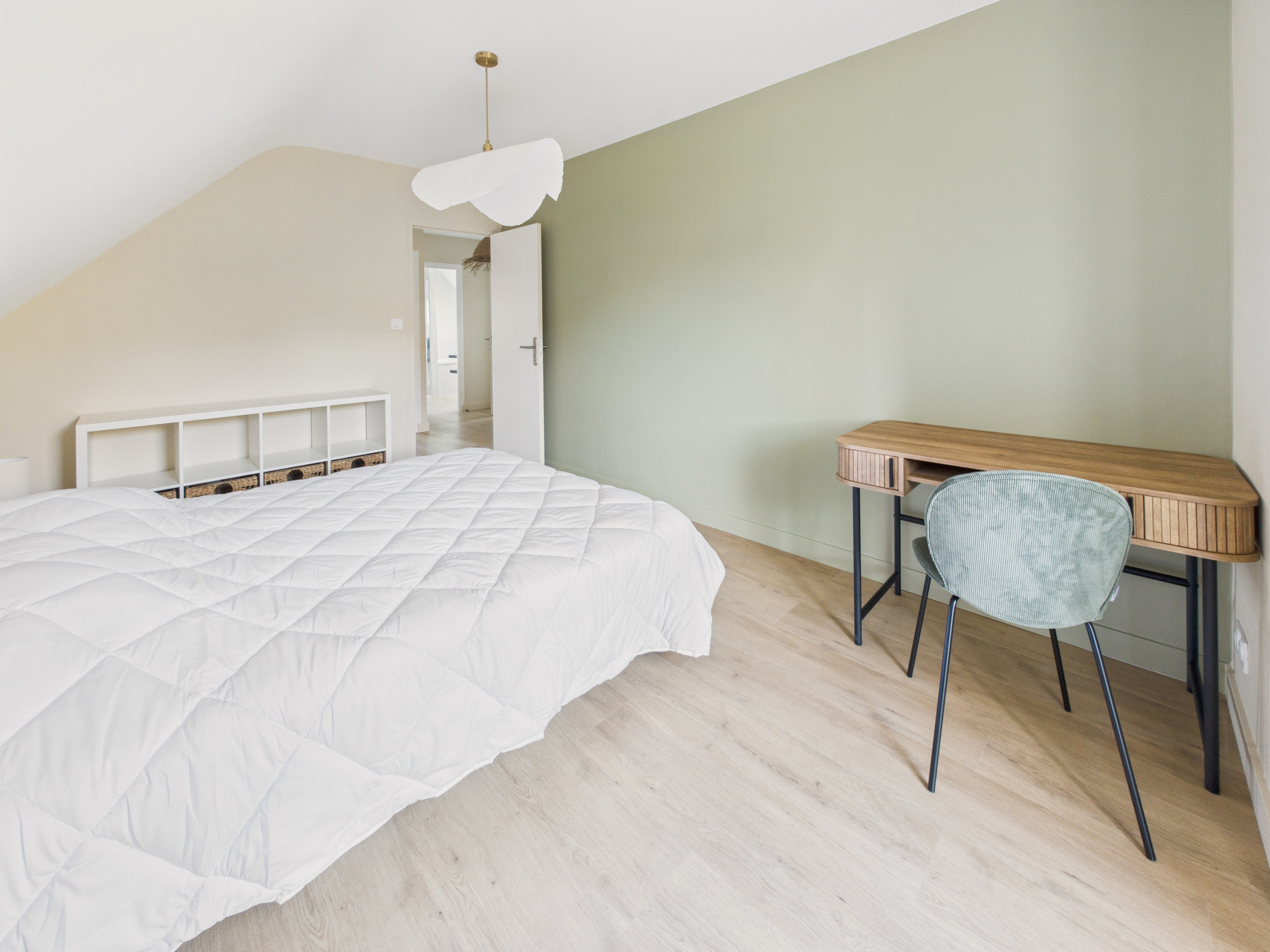 Una vez caída la noche, podrá acurrucarse en una de las 4 habitaciones de la casa. La primera se encuentra en la planta baja, será ideal para una pareja con su cama king-size. En la planta superior, encontrará 2 otras habitaciones con camas queen-size, y la última será perfecta para niños o una familia con una litera, una cama doble y un espacio de trabajo o juego.
