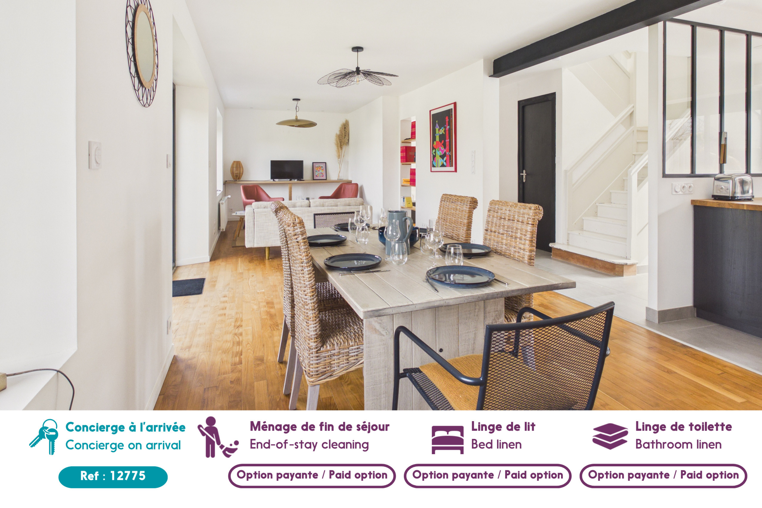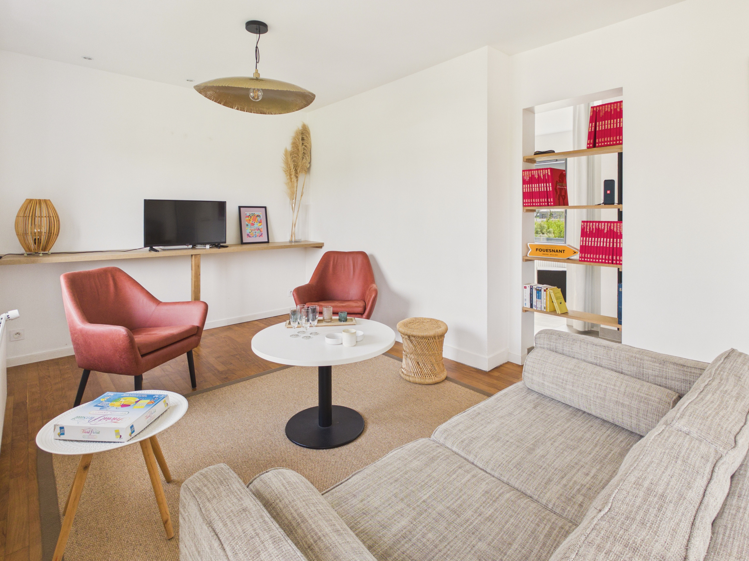 Venid a descubrir Fouesnant, capital de la Riviera Bretona, combinando tranquilidad y actividades al aire libre. Alójese en una vivienda espaciosa y luminosa de 160 m², que puede acoger hasta 6 adultos y 1 niño, ideal para vacaciones en familia o con amigos. Esta casa se encuentra en la ciudad en un barrio tranquilo, a solo unos kilómetros de las playas de Cap Coz, Beg Meil y Mousterlin. ¡Podrá disfrutar de las hermosas playas y los numerosos senderos de senderismo en cualquier momento del día! Dispondrá de un gran jardín y una terraza de 55 m², ideal para disfrutar del sol desde primera hora de la mañana en el desayuno y de la puesta de sol durante el aperitivo. Una plancha también está a su disposición para deleitarse en verano.
