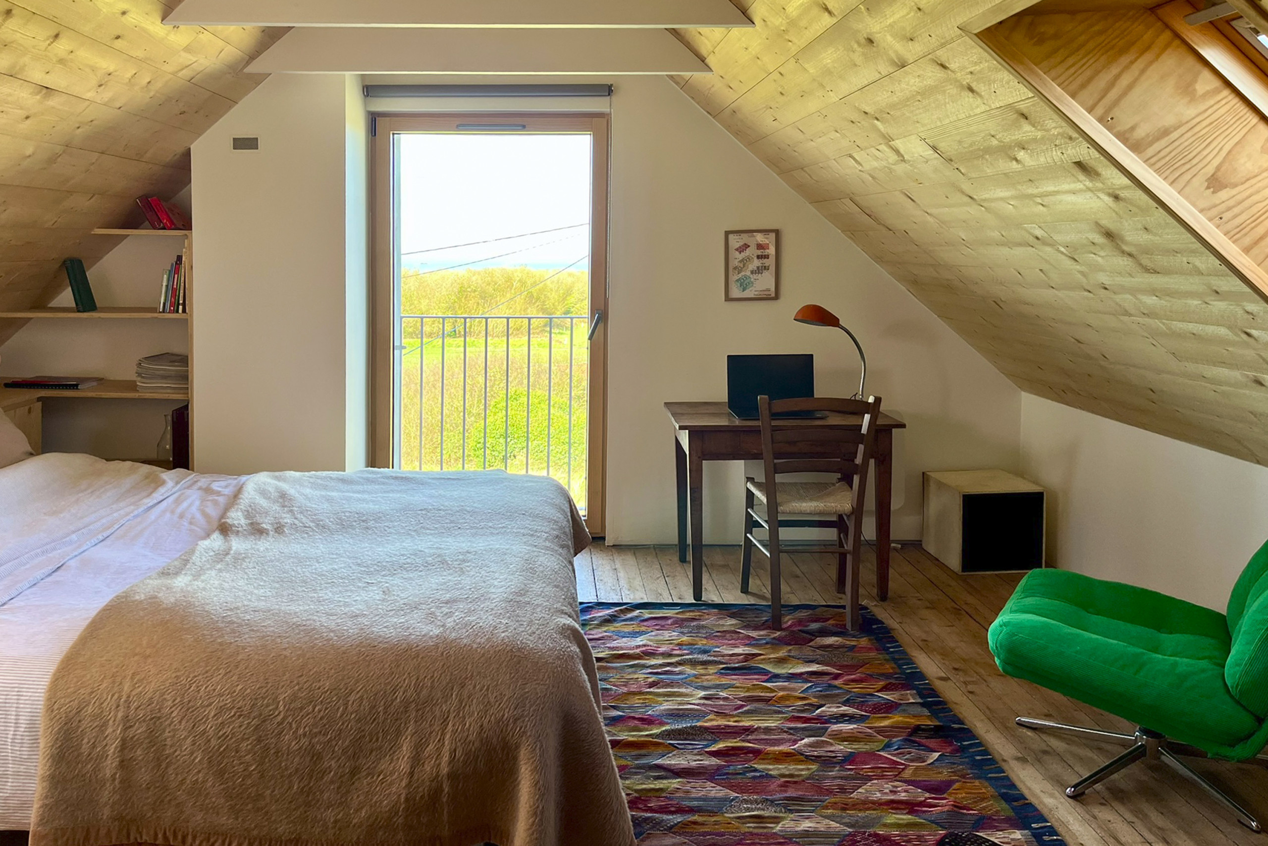 Un espacio de oficina completa esta planta en el rellano, bajo una ventana para beneficiarse de la luz y la vista del jardín. Una conexión Wi-Fi está disponible y permitirá a los más valientes hacer teletrabajo.