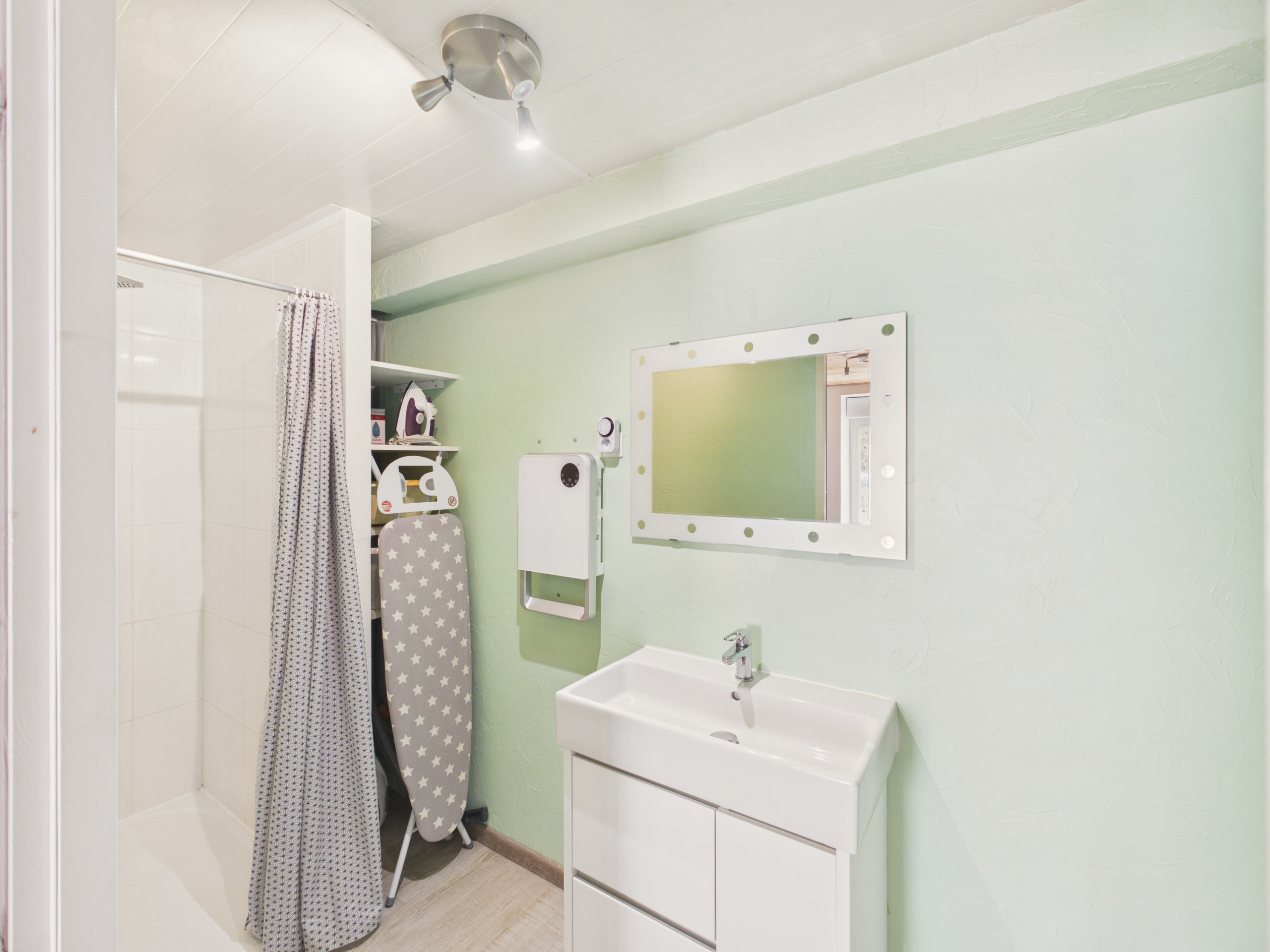 Para mayor comodidad, encontrará un cuarto de baño con inodoro, lavadora y secador de pelo, así como un inodoro independiente.