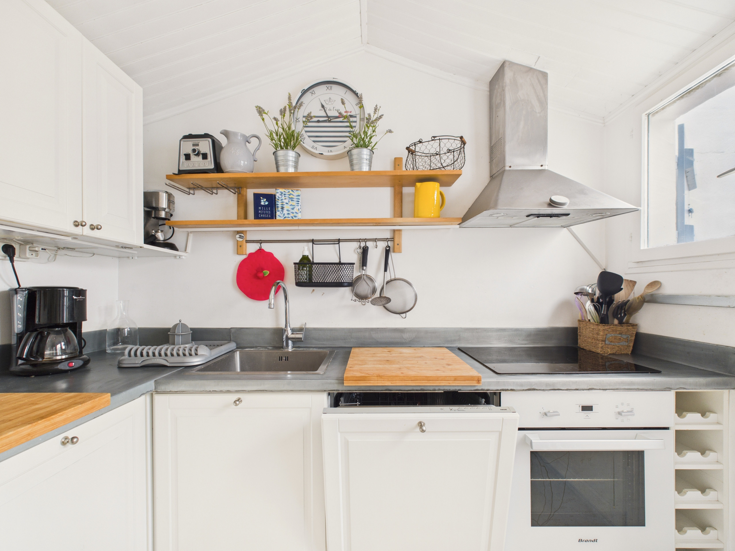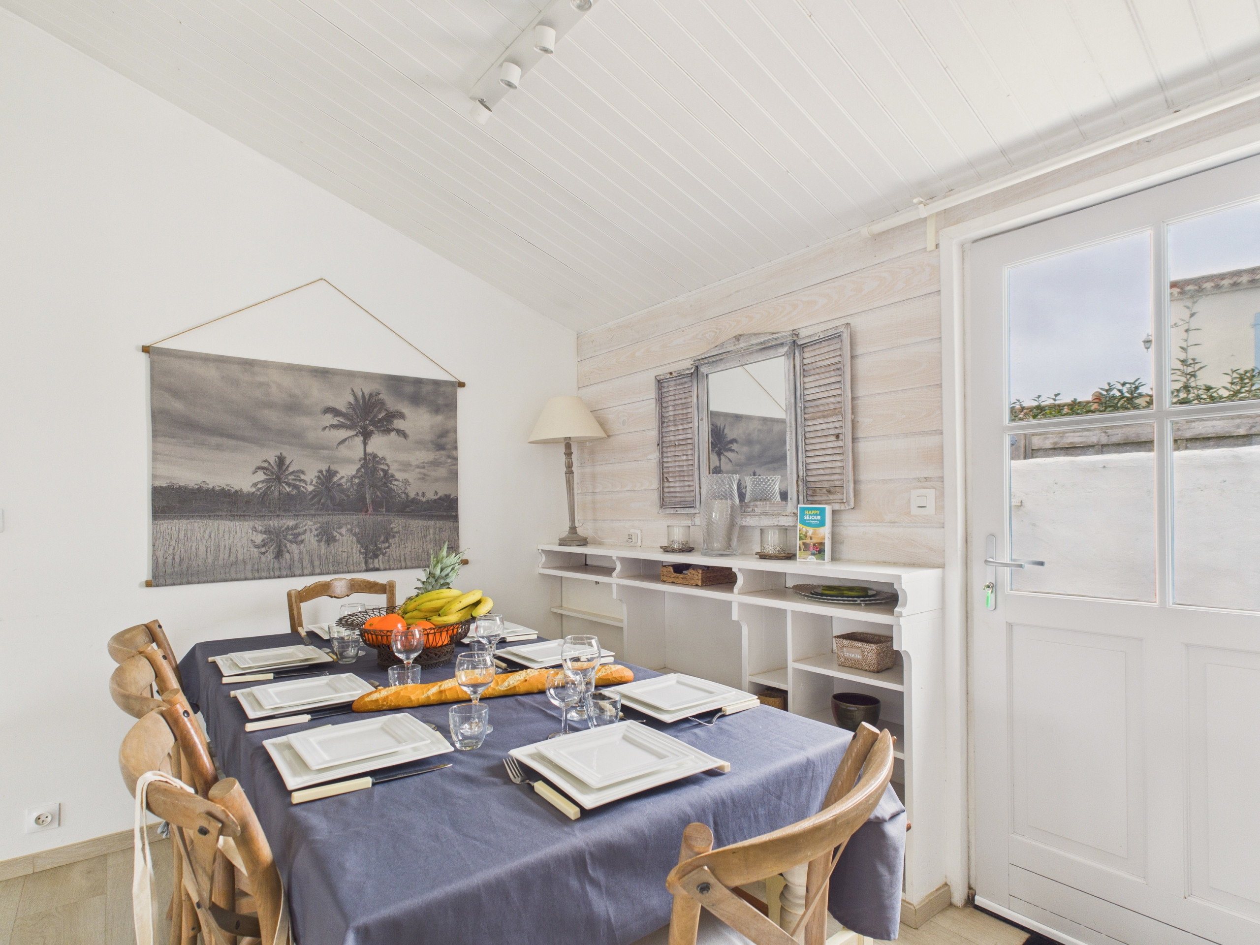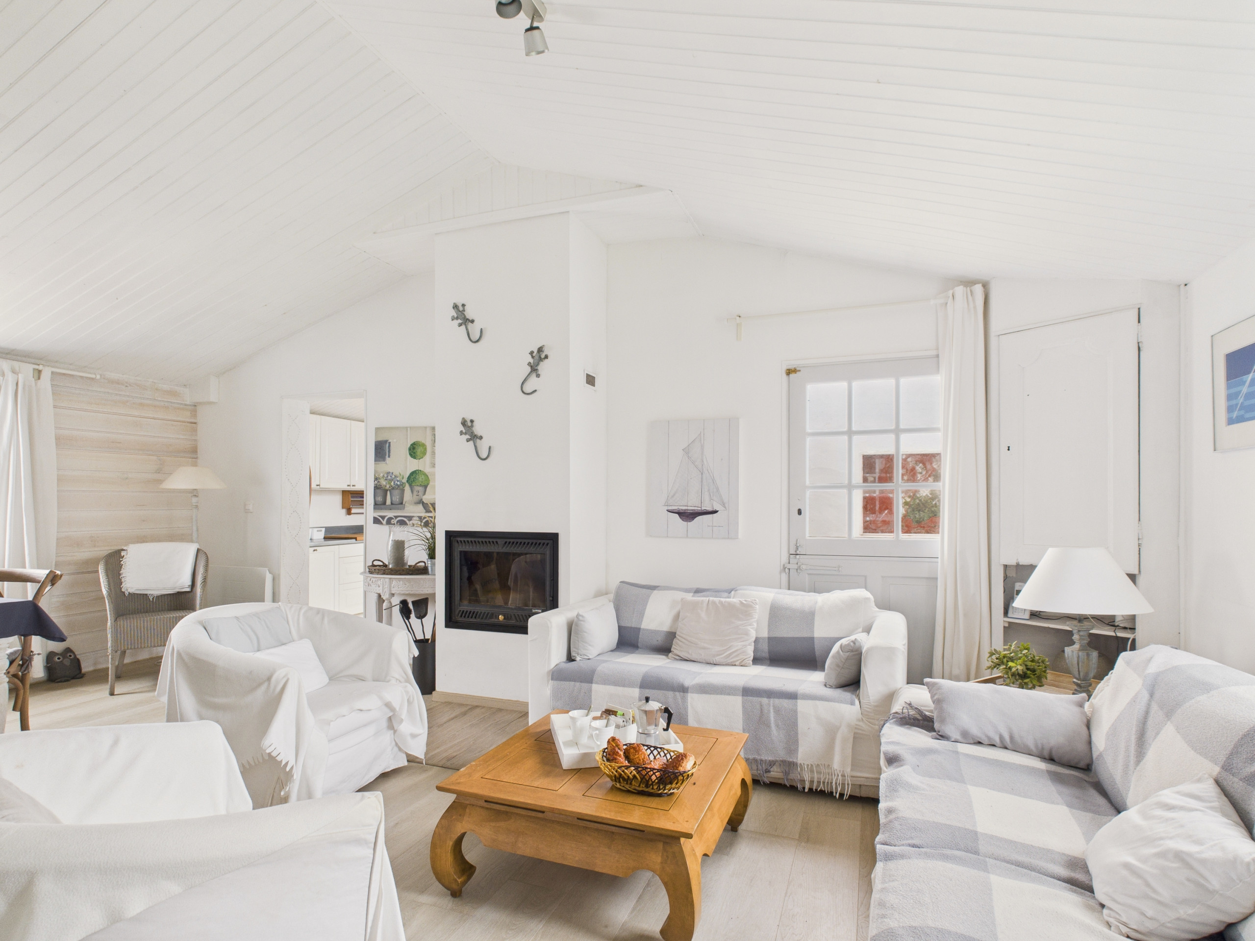 En el interior, al entrar en la casa, descubrirá una hermosa sala de estar cálida y luminosa. El salón está amueblado con dos sofás cómodos, dos sillones, un televisor y una chimenea, ofreciendo un espacio acogedor para reunirse después de un día en la playa. El espacio de comedor contiguo cuenta con una gran mesa que puede acomodar hasta 8 personas. Justo al lado, la cocina semiabierta e independiente está completamente equipada: placas de inducción, refrigerador, microondas, horno, lavavajillas, cafetera de filtro, tostadora, hervidor y todo lo necesario para preparar sus comidas como en casa.