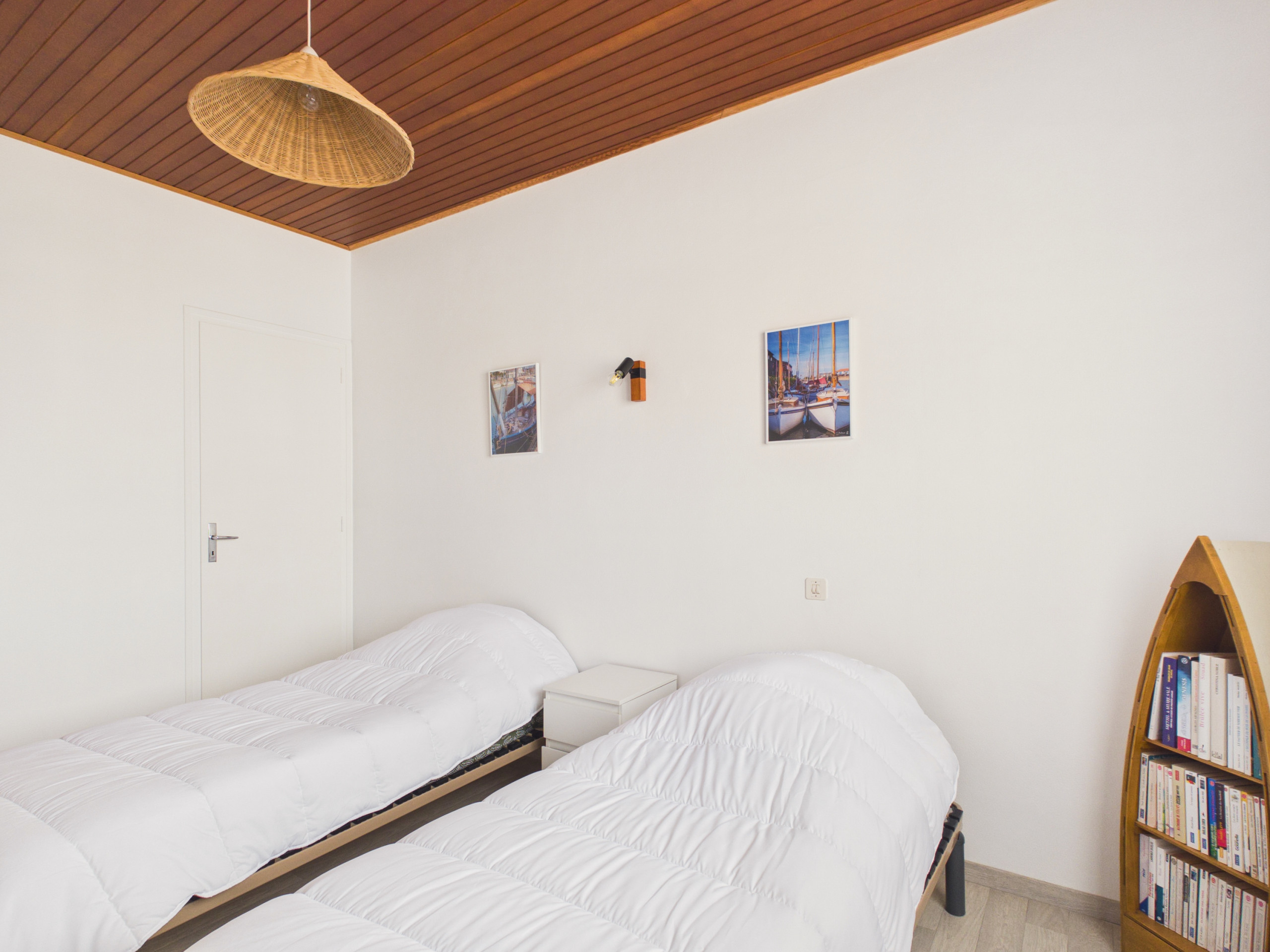 La parte nocturna incluye tres habitaciones cómodas: dos habitaciones con dos camas individuales (90x190) y una tercera con una cama Queen Size (160x200), perfectas para alojar hasta 6 personas. También encontrará dos cuartos de baño con ducha y secador de pelo para su comodidad.
