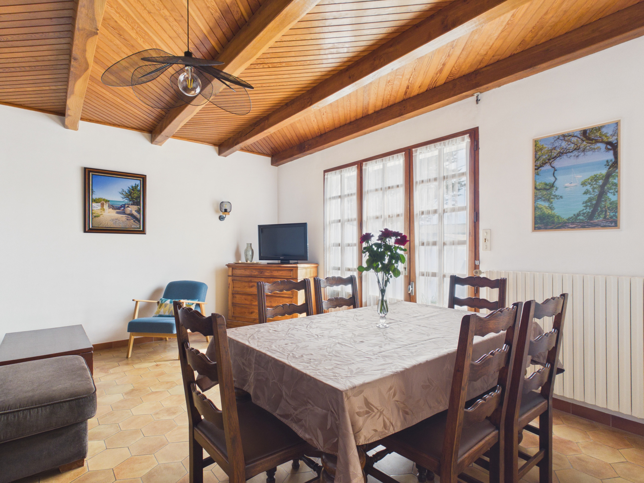 A solo unos pasos de la playa del Atlántico y en las inmediaciones del centro de La Guérinière, esta agradable casa de 109 m² te acoge para una estancia en familia o entre amigos. Espaciosa, cómoda y totalmente equipada, puede recibir hasta 6 personas en un entorno tranquilo y verde.