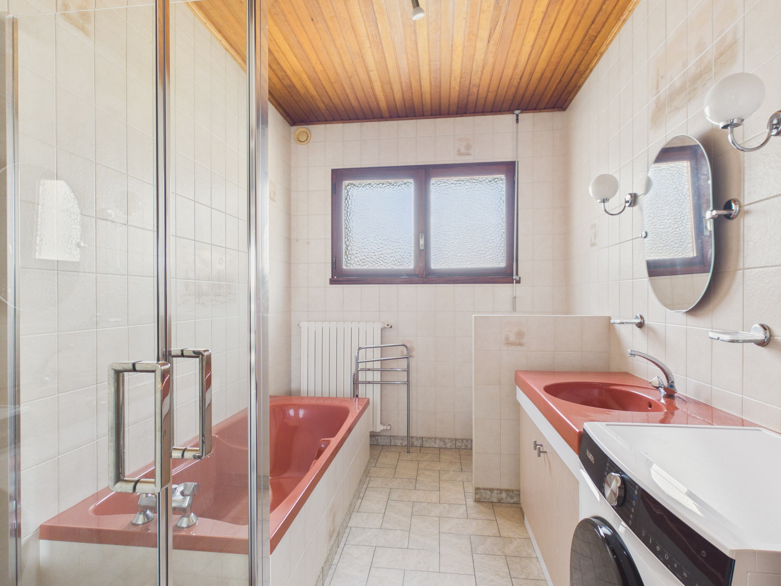 Un cuarto de baño equipado con bañera, ducha, WC y secador de pelo, así como un WC independiente completan la vivienda.