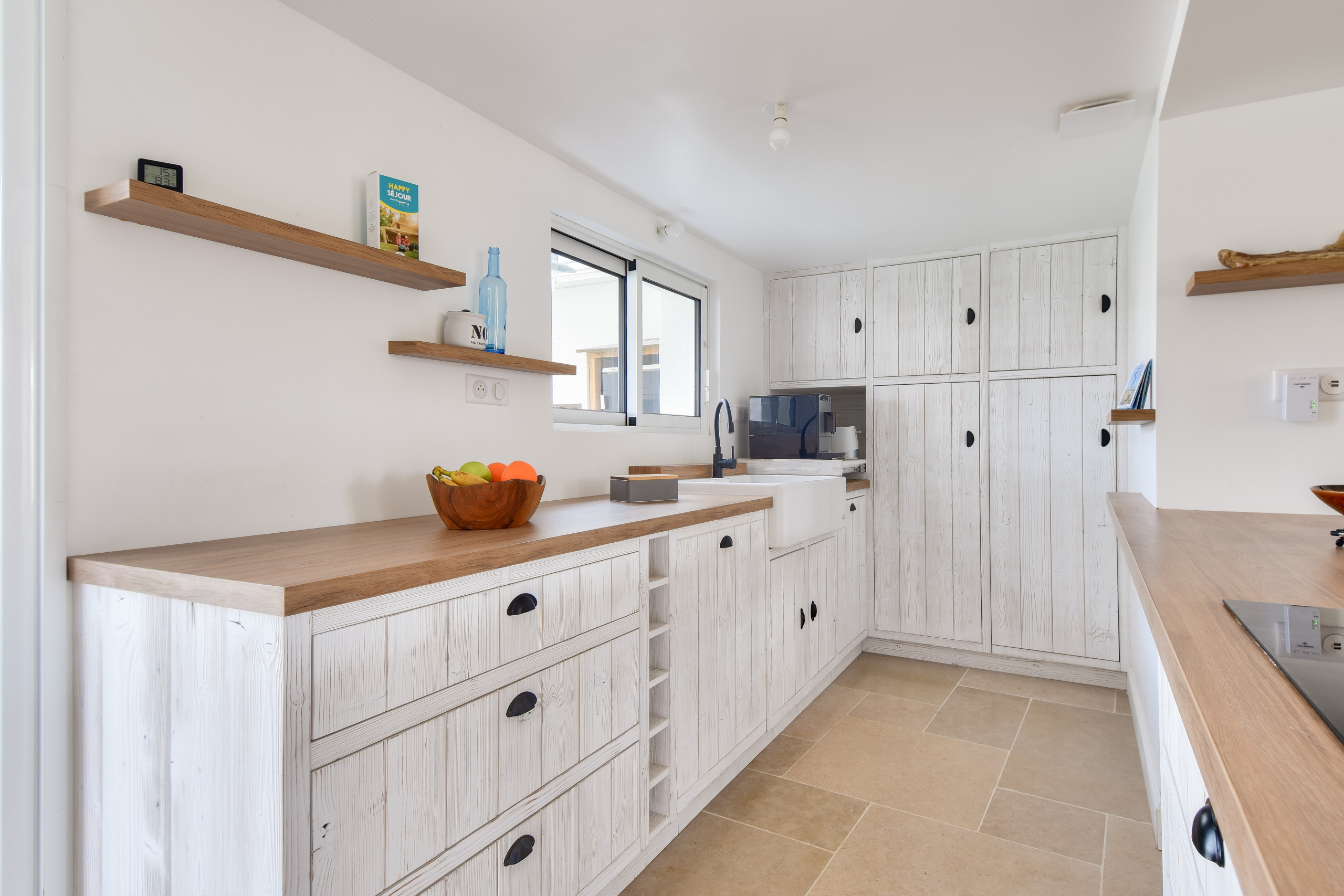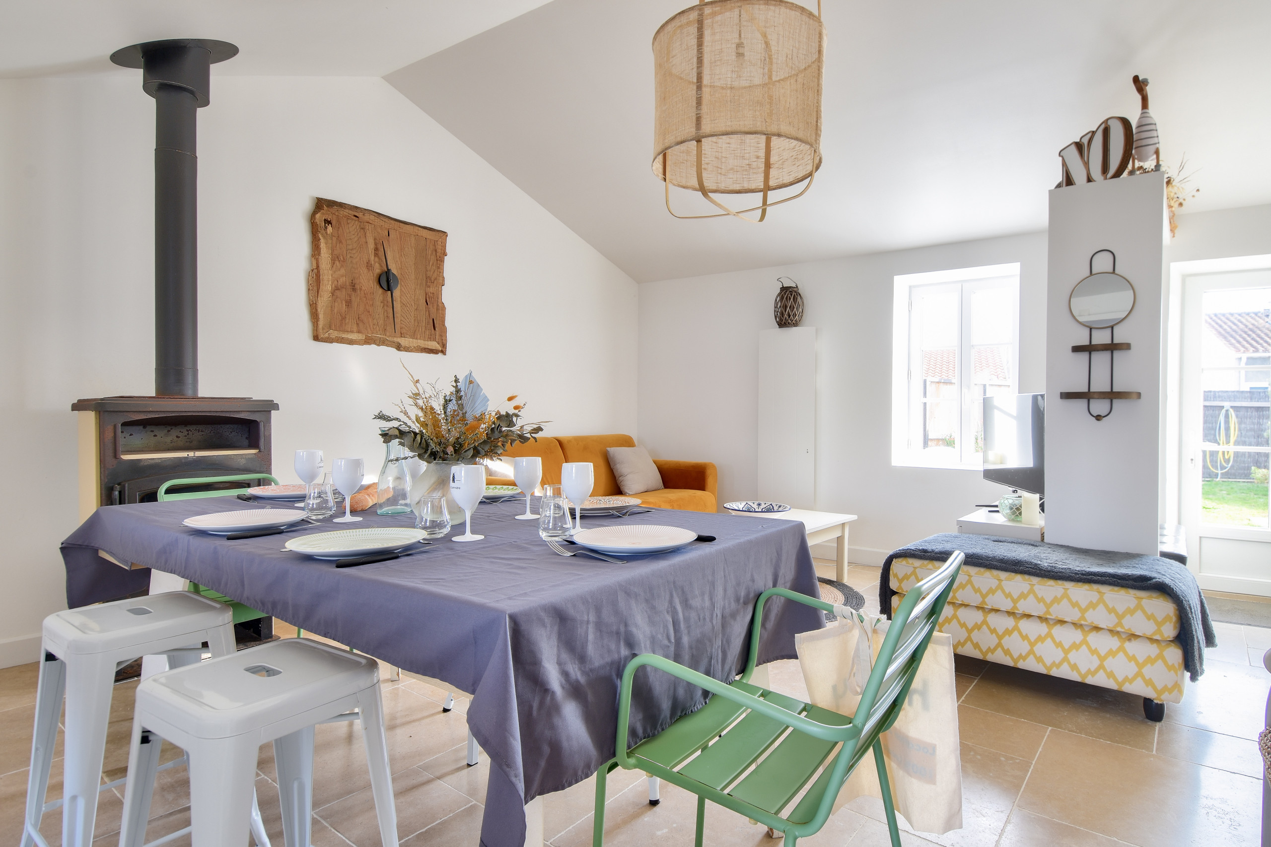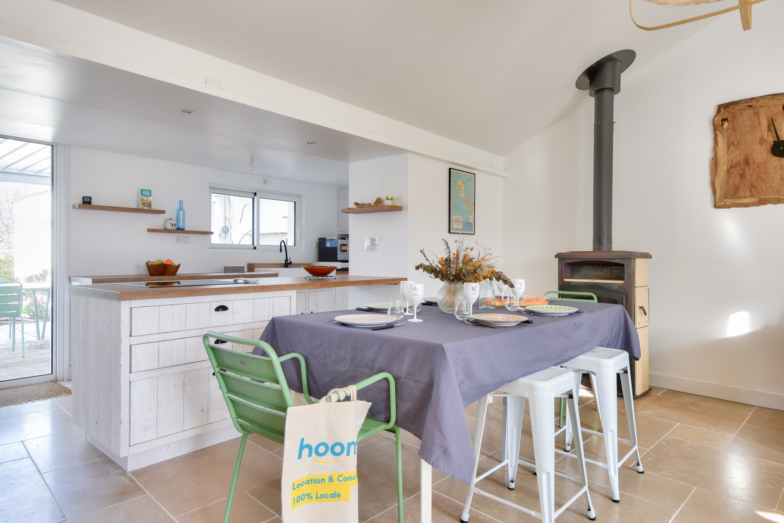 La casa está bellamente decorada en tonos de madera y con toques de borde de mar. La cocina es moderna y está completamente equipada (placa de inducción, refrigerador, microondas, horno, congelador, lavavajillas, cafetera Nespresso, tostadora y hervidor). El comedor, acogedor y luminoso, es perfecto para reunirse alrededor de buena comida y momentos de risa.