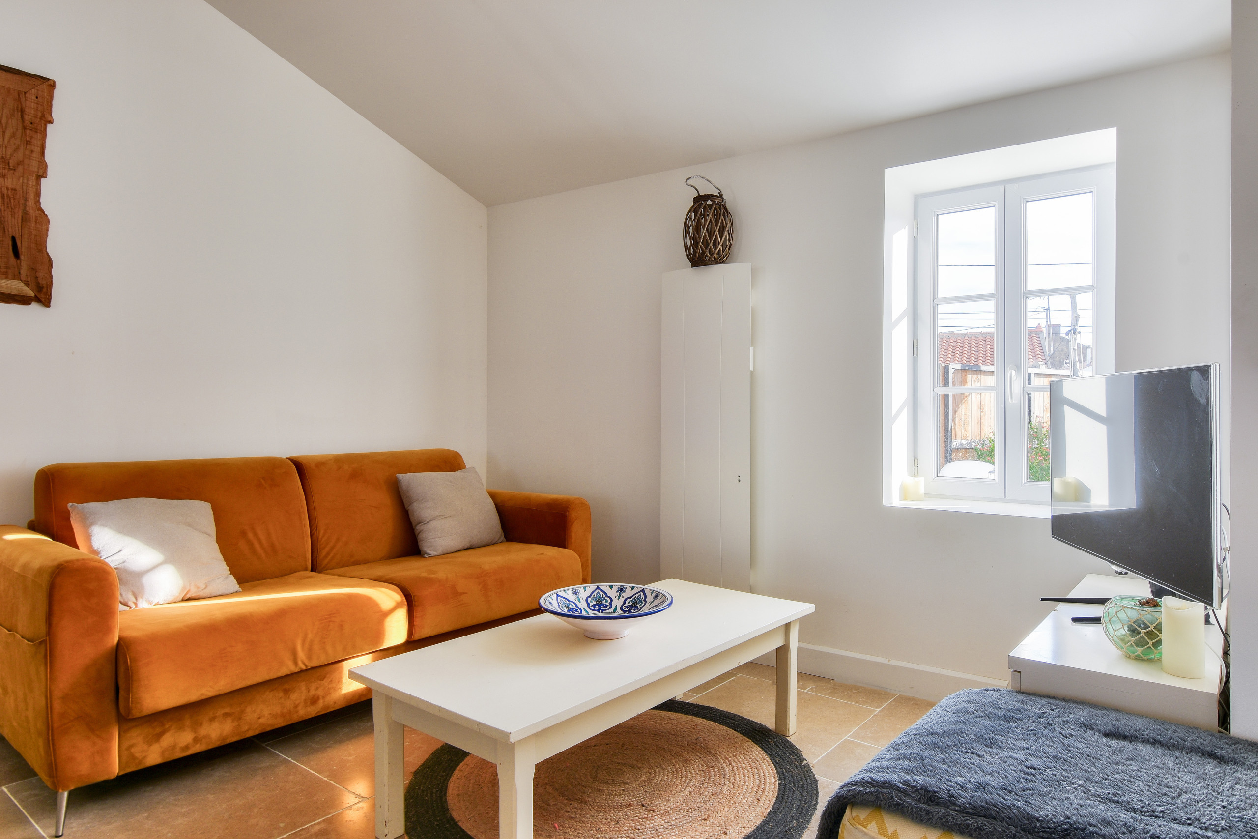 El salón es un rincón acogedor que le invita a una pausa relajante, ya sea para leer, ver una película o tomar un café.