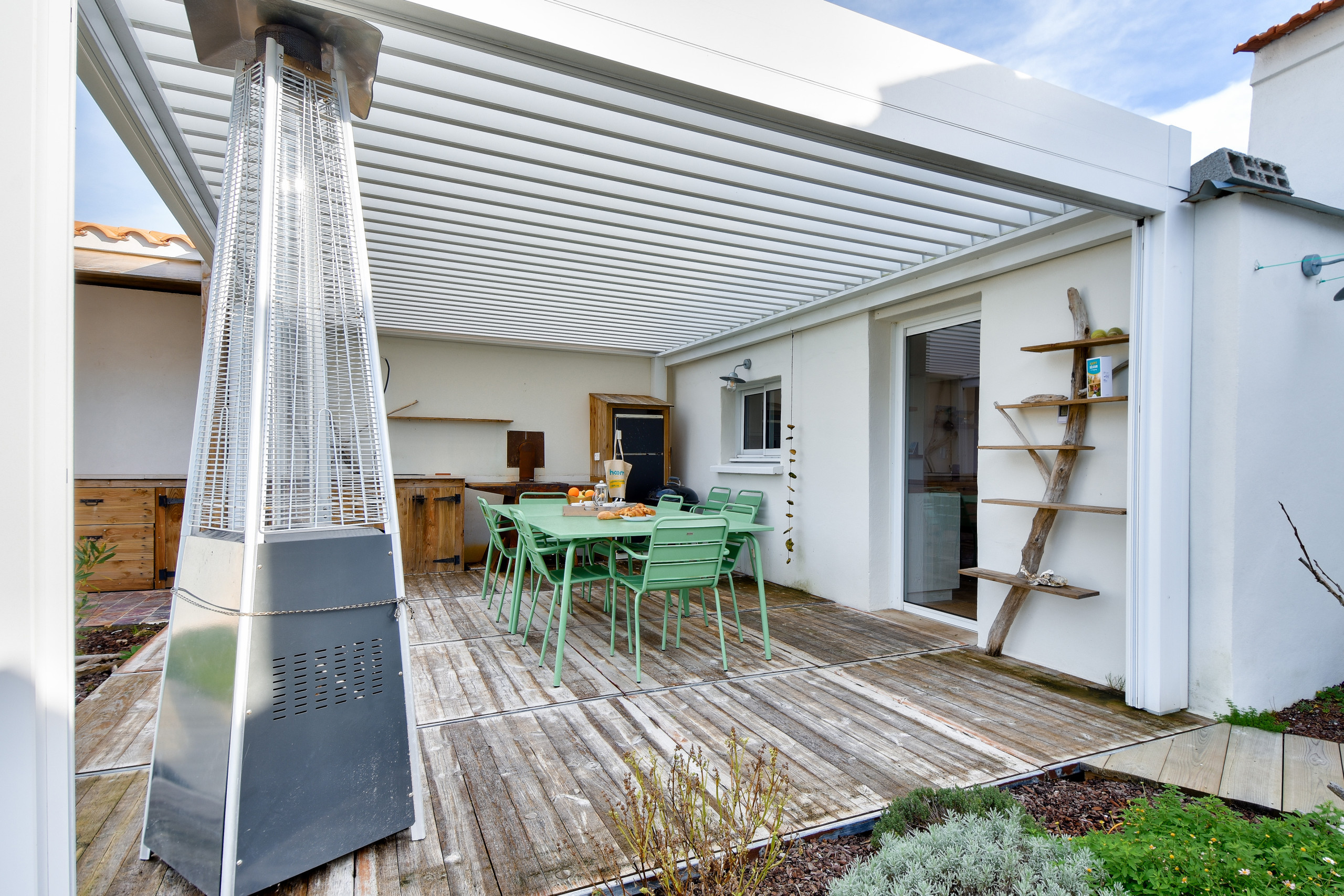 Su jardín y su hermosa terraza de madera con pérgolas bioclimáticas le ofrecen numerosos espacios para disfrutar plenamente de sus vacaciones: siestas al sol, momentos de lectura, aperitivos y rincón de barbacoa...