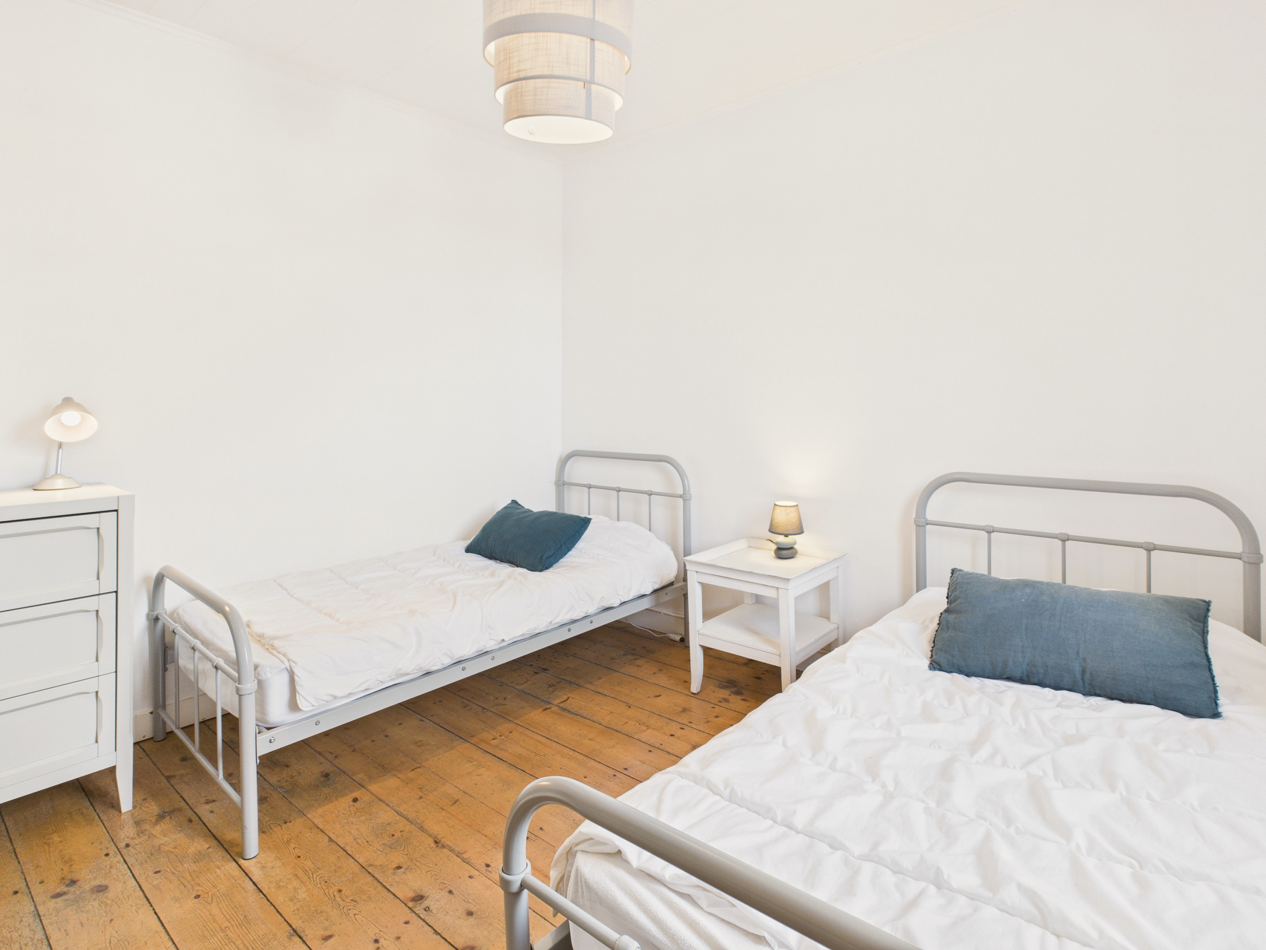 En la zona de noche, las tres habitaciones situadas en la planta superior le ofrecen todo el confort necesario: una primera habitación con una cama Queen Size (160x200), una segunda con una cama doble (140x190) y una tercera equipada con dos camas individuales (90x190), ideal para niños o amigos. La casa cuenta además con dos cuartos de baño: el primero en la planta baja con ducha y secador de pelo, así como un WC separado; el segundo en la planta superior con ducha y WC.