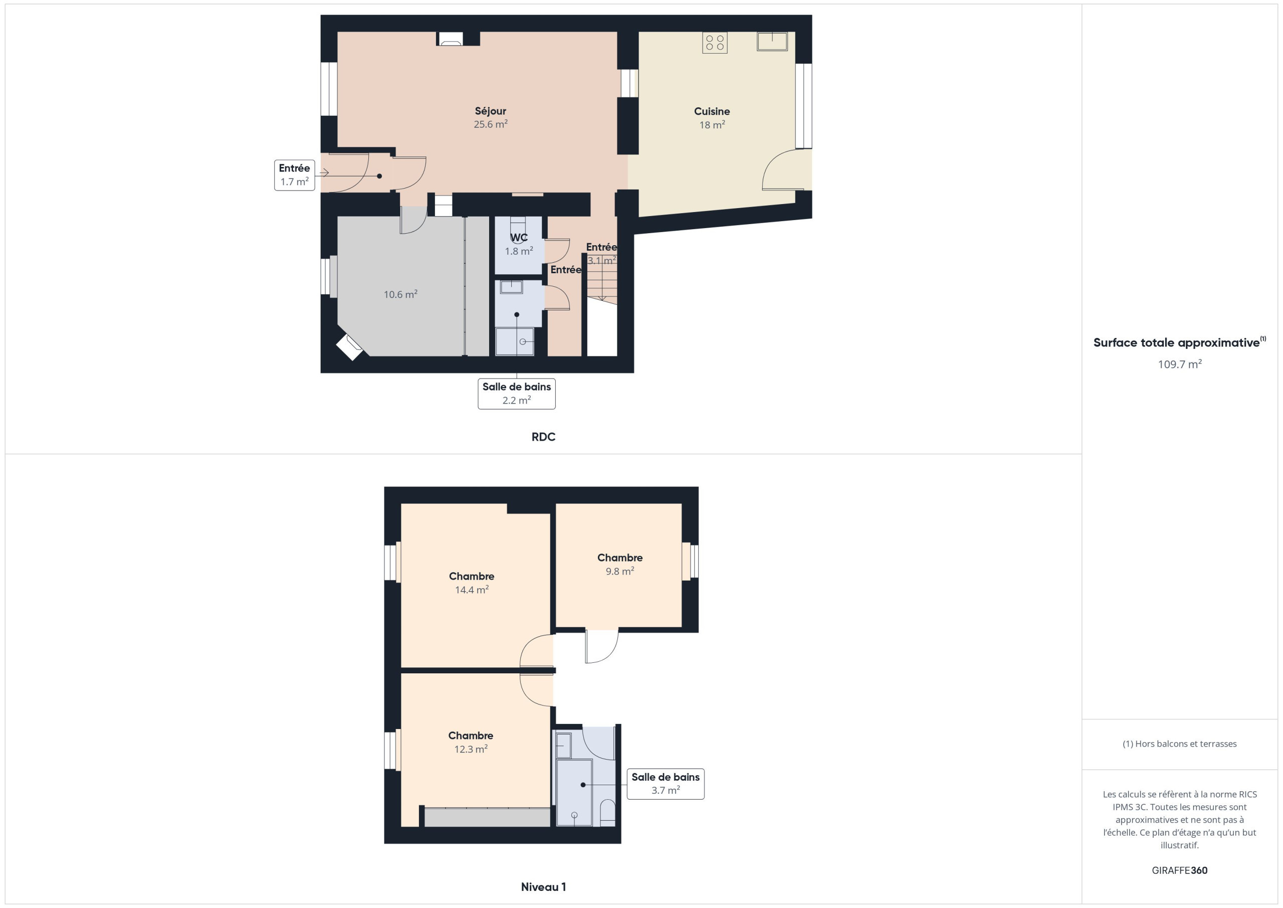 En la planta superior, el espacio de noche incluye dos habitaciones confortables: una habitación familiar con 4 camas individuales (90x200) modulables en dos camas King Size (180x200), y una segunda habitación con una cama doble (140x200). Un cuarto de baño con bañera y WC le espera en la planta superior, y un WC separado está disponible en la planta baja, para mayor comodidad.