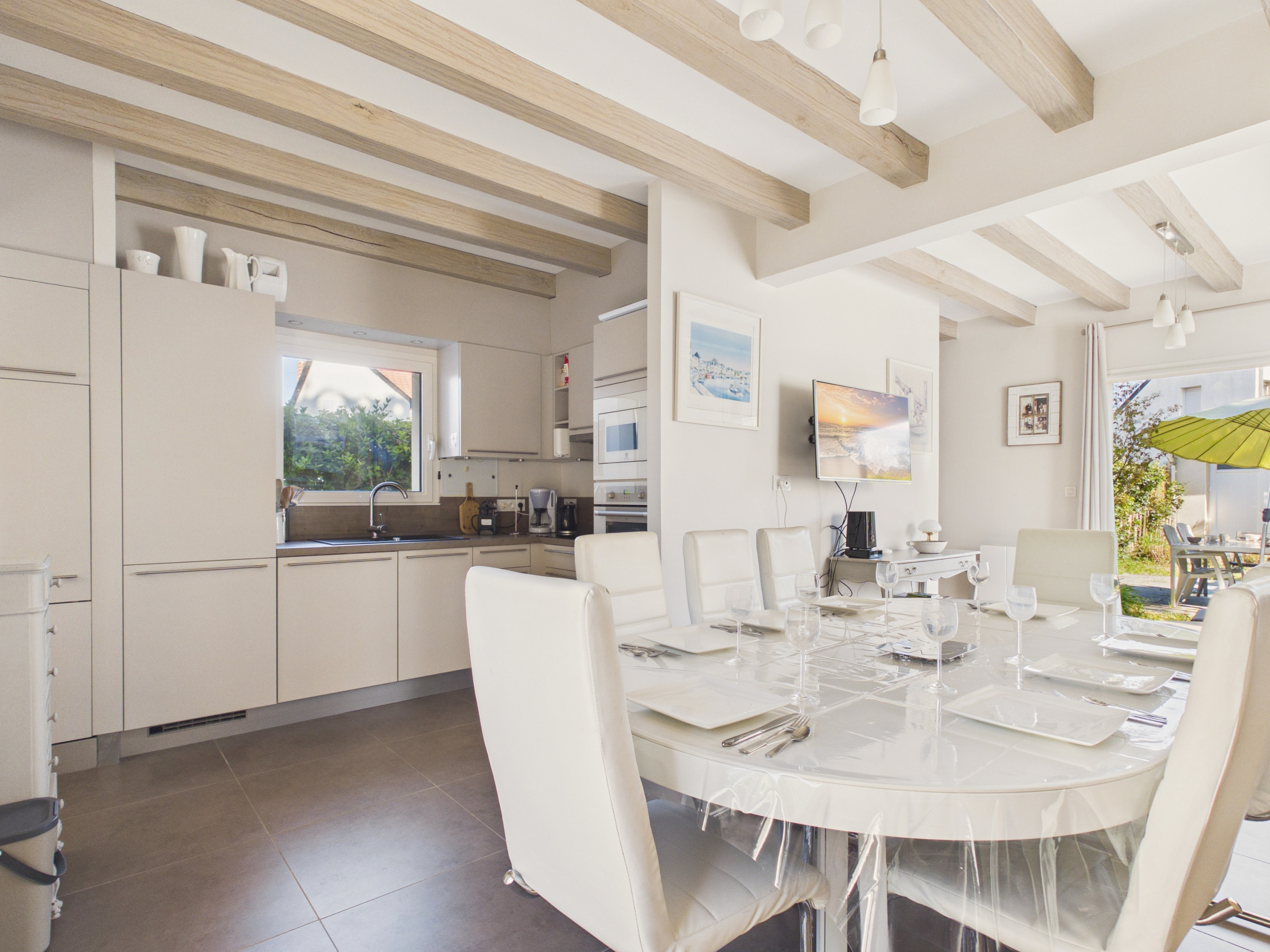 Nada más llegar, descubrirá la luminosa sala de estar con acceso al jardín. Accederá a la zona de estar con su sofá, la televisión (la estufa de las fotos ya no está en la casa). También hay un comedor acogedor y una cocina abierta. Totalmente equipada, tiene todo lo necesario para cocinar con placas de inducción, horno, microondas, hervidor, lavavajillas, tostador, una cafetera de filtro y una Nespresso.