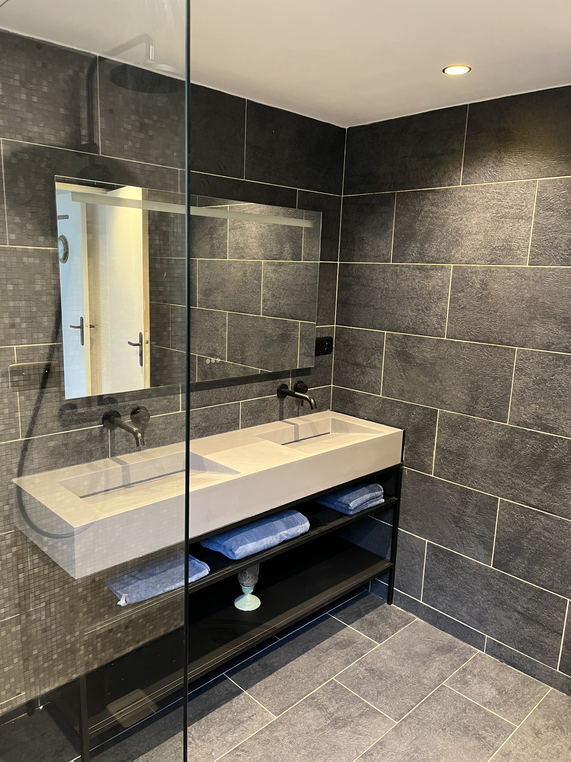 La zona de noche se compone de cuatro habitaciones adaptadas a toda la familia: dos habitaciones cuentan cada una con una cama doble (140x190), una tercera ofrece dos camas individuales (90x190), y una cuarta acoge una cama individual (90x190). Dos cuartos de baño con ducha y secador completan el conjunto, uno de ellos equipado con WC. Para mayor comodidad, un segundo WC separado también está a disposición.