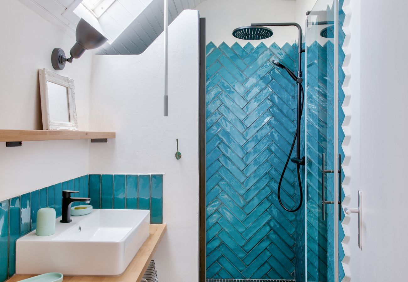 Cuando se sienta cansado, puede ir a descansar a una de las 4 habitaciones de la casa. La primera está en la planta baja con sus dos camas individuales que se pueden pegar, mientras que en la planta superior te esperan 3 dormitorios, todos con techos inclinados y toques azulados que recuerdan a la playa. Dos de ellos tienen una cama doble y, por lo tanto, son perfectos para parejas. Uno de ellos también está equipado con un escritorio, mientras que el último tiene dos camas individuales que se pueden juntar, así como un sofá cama (120) y un escritorio. También encontrará dos baños, el primero en la planta baja y el segundo en el primer piso.