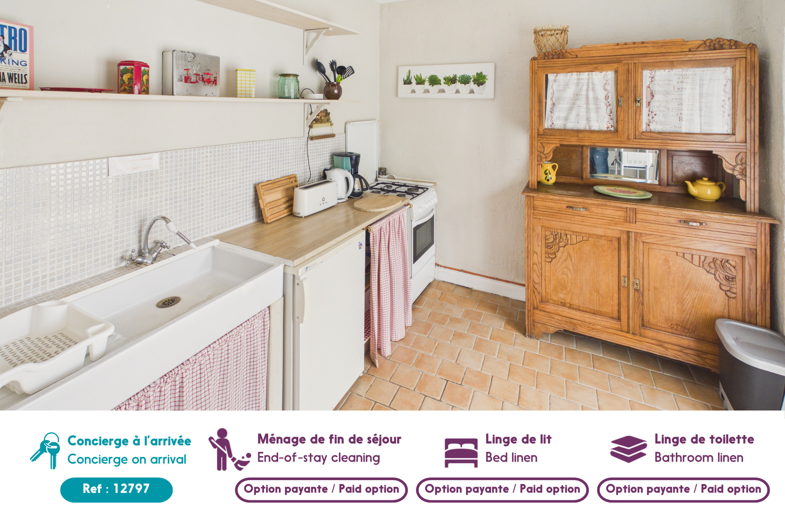 La ropa de hogar y la limpieza de fin de estancia se ofrecen como opción, según el nivel de confort deseado. La ropa se proporciona a su llegada para toda la duración de la estancia (sin renovación). La limpieza durante la estancia no está incluida en nuestros servicios.
